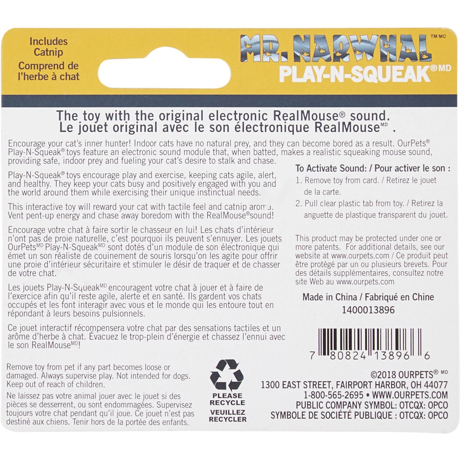 OurPets Play-N-Squeak Narwhal Cat Toy