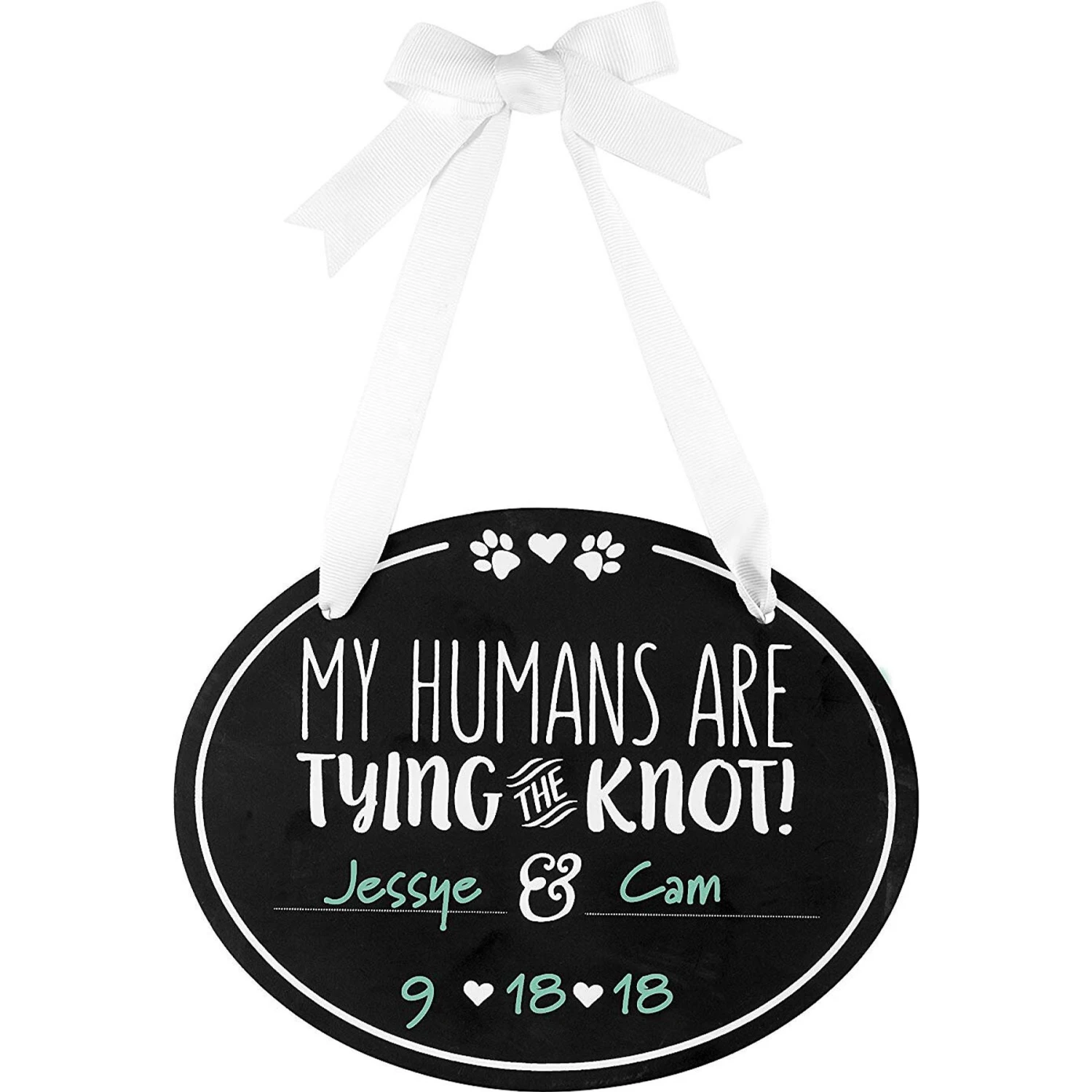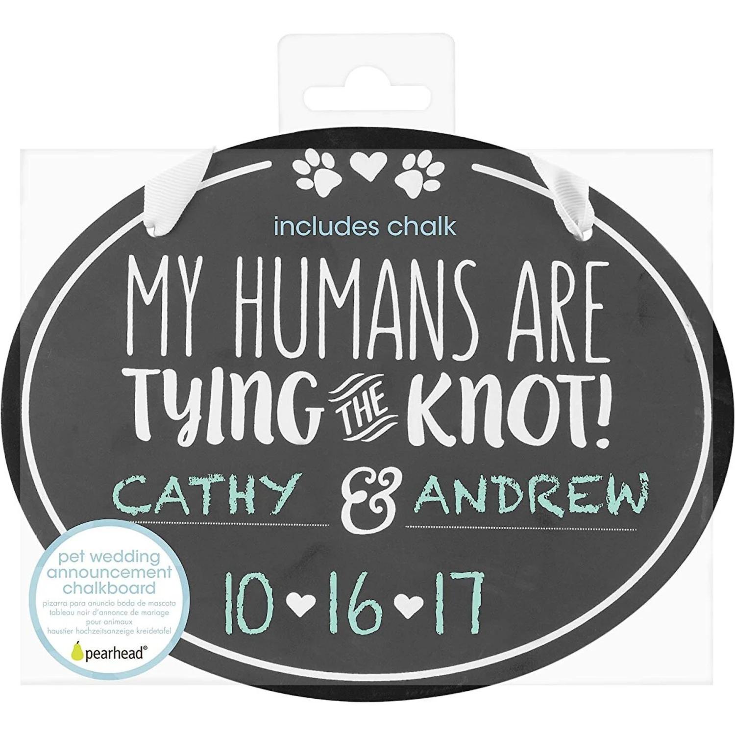 - Announcement chalkboard features the words “My Humans are Tying the Knot!”