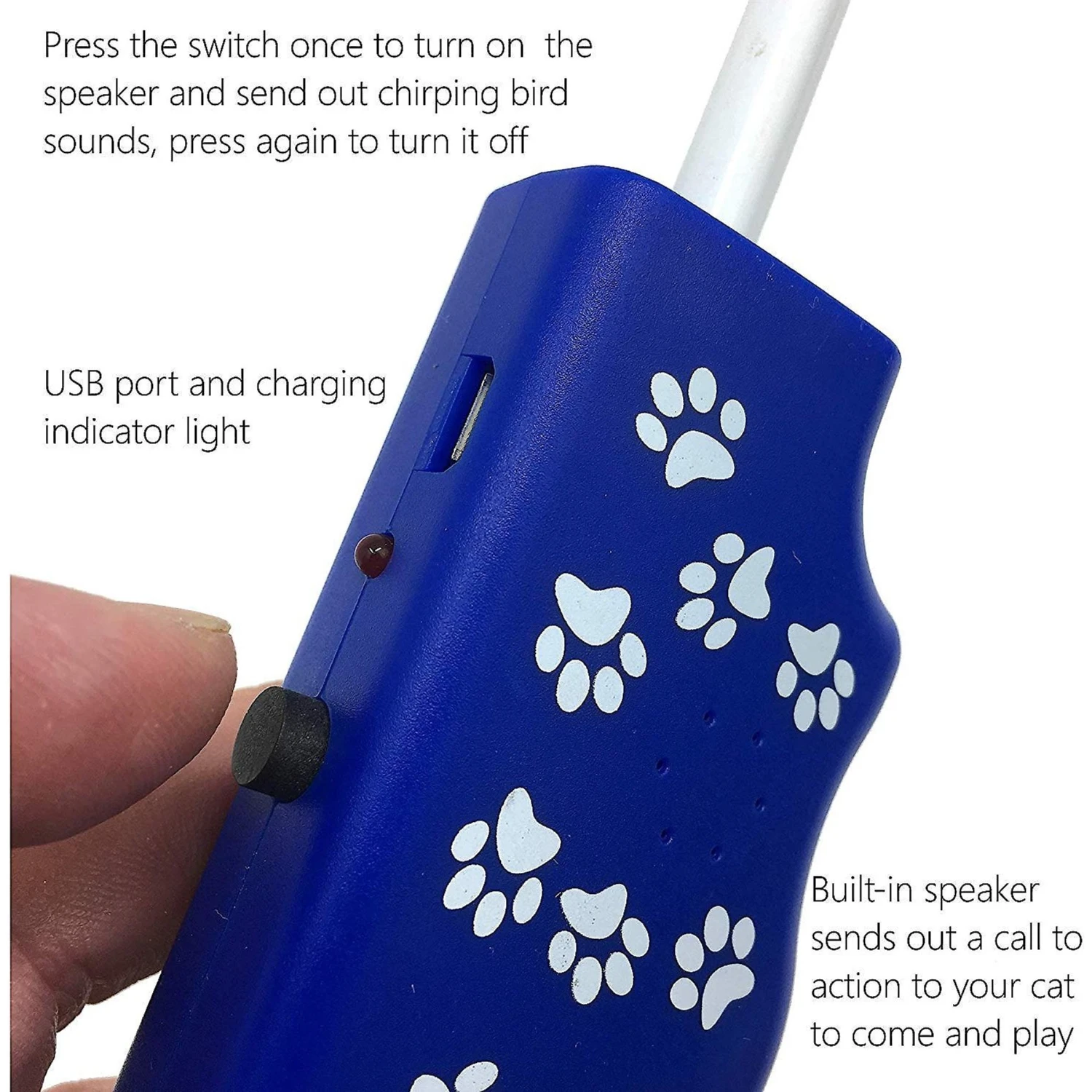 - This unique wand combines several of your feline’s favorite toys in one: dangling teasers, a laser pointer and engaging bird sounds.
