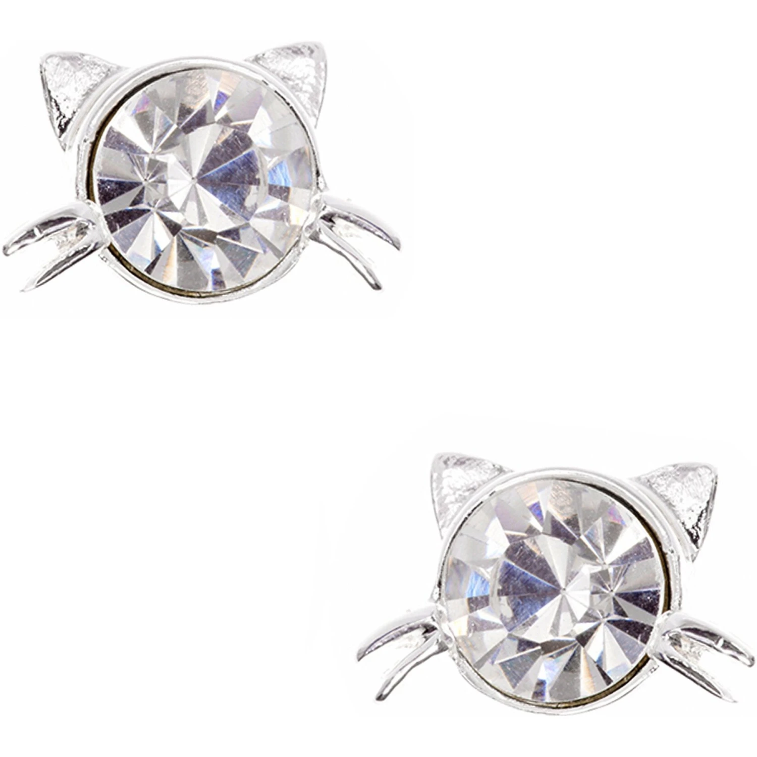 - Fashionable pawprint earrings are made with polished diamond-like crystal accents.