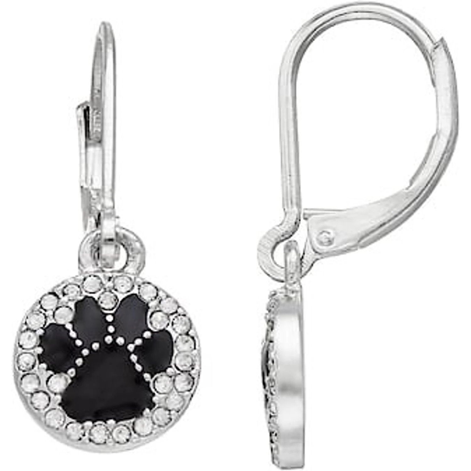 - Fashionable pawprint earrings are made with polished diamond-like crystal accents.