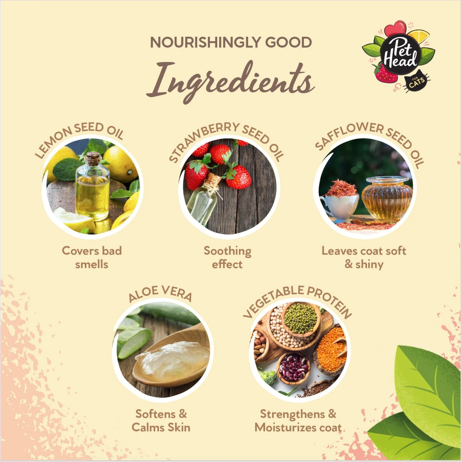 - Packed with strawberry and lemon seed oil for deodorizing and nourishing properties, while safflower oil leaves the coat soft and shiny.