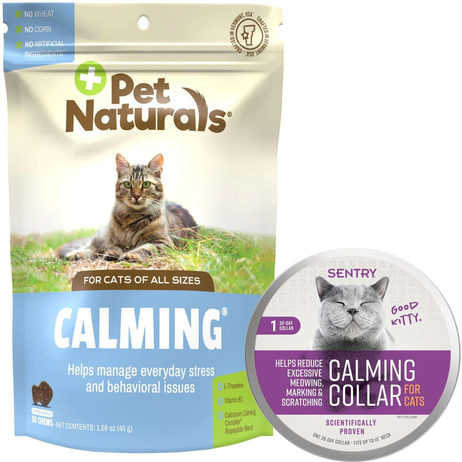 Pet Naturals Calming Cat Chews & Sentry Good Behavior Calming Collar For Cats, Up To 15-in Neck