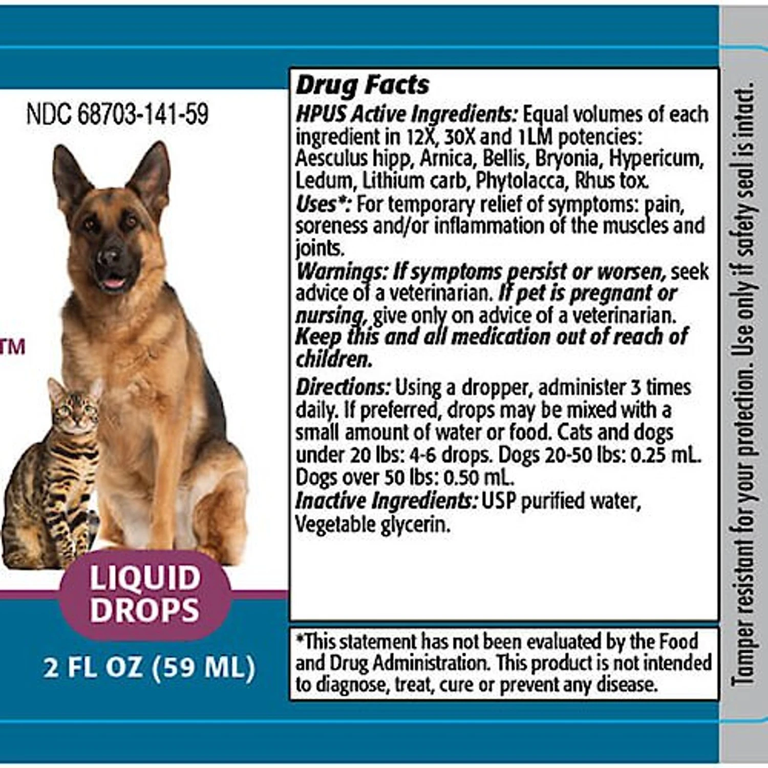 - A homeopathic remedy for pets who are uncomfortable due to old age or minor injury.