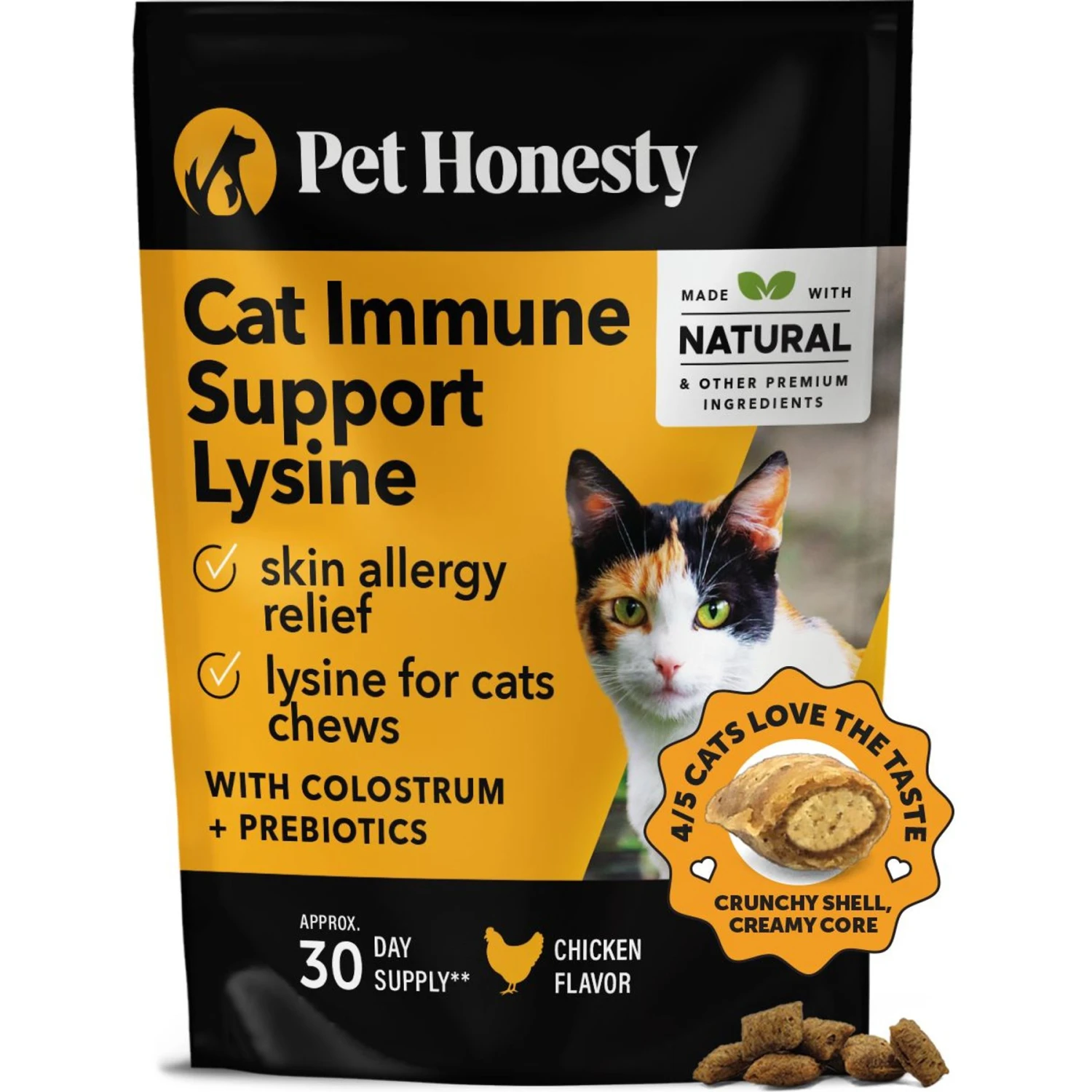 PetHonesty Dual Texture Immune Support Lysine Chews Supplement For Cats, 3.7-oz Bag