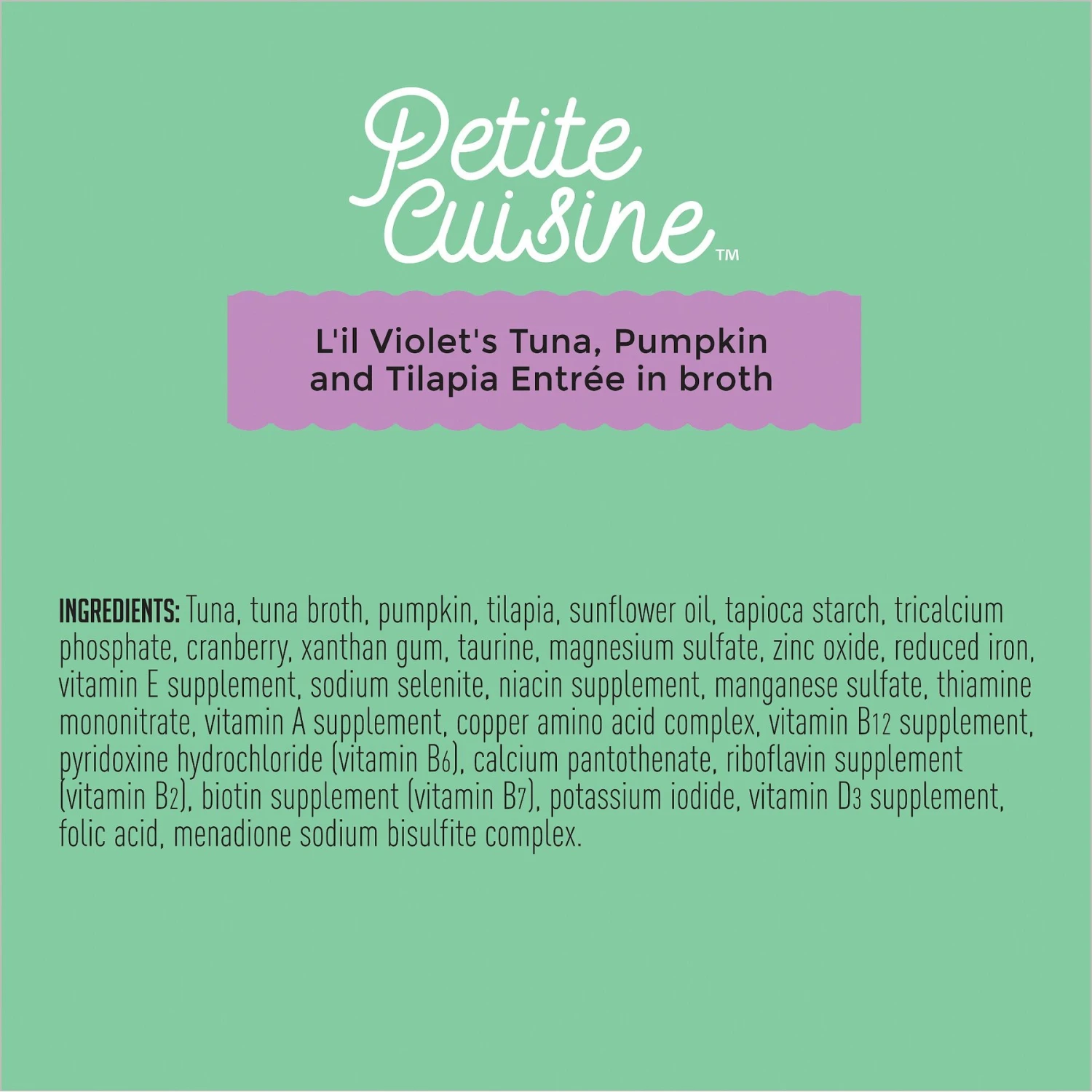 Petite Cuisine L’il Violet’s Tuna, Pumpkin & Tilapia Entrée In Broth Grain-Free Wet Cat Food, 2.8-oz Can, Case Of 24