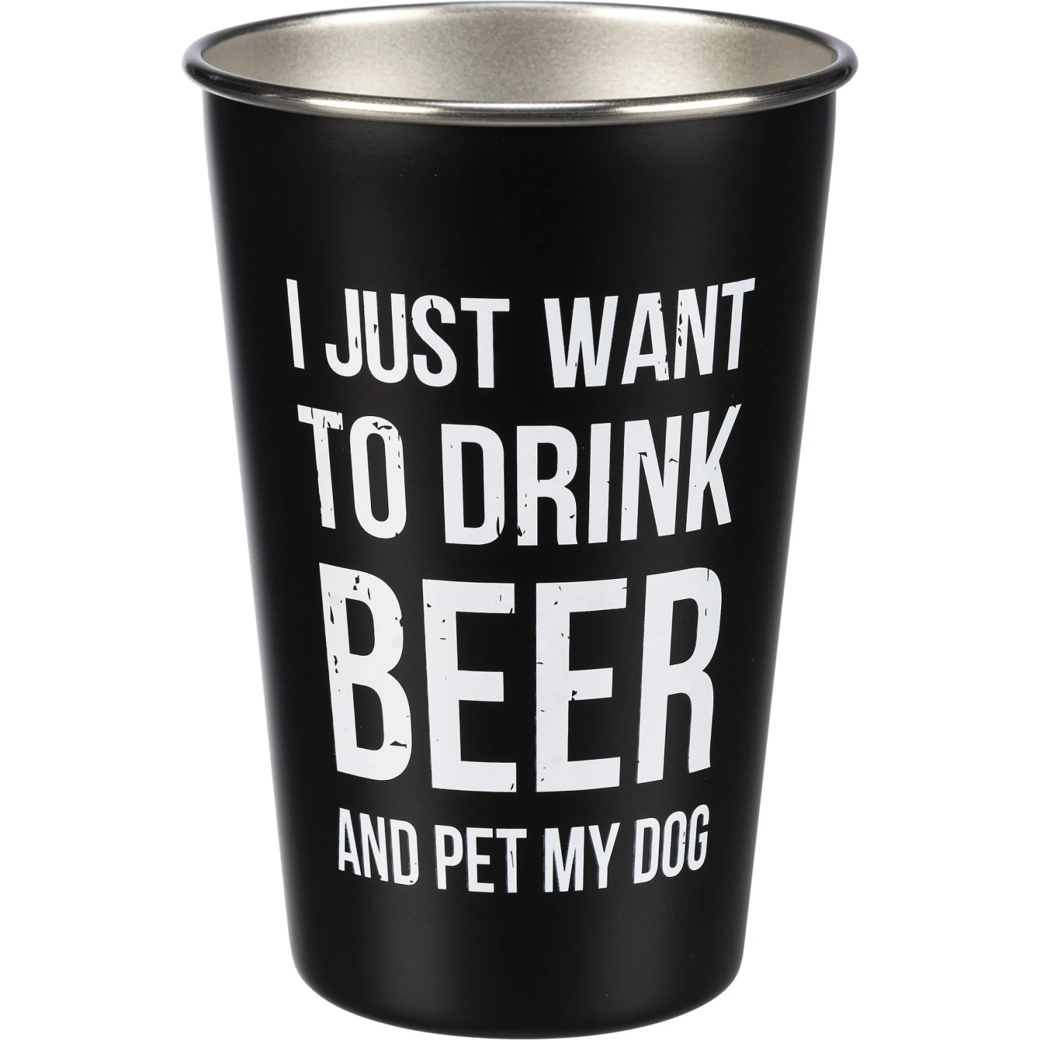 Primitives By Kathy Drink Beer & Pet Dog Stainless Steel Pint, 16-oz
