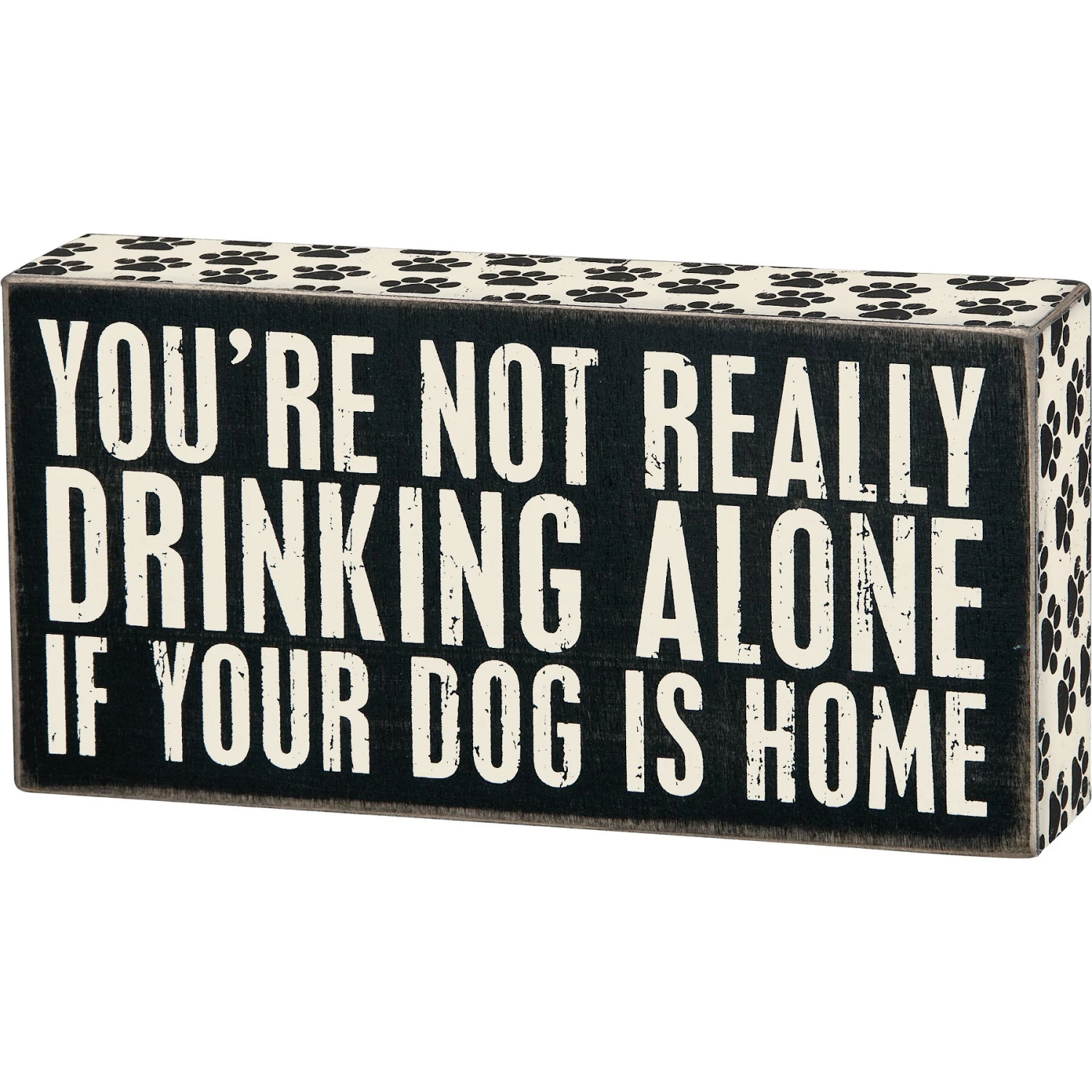 Primitives By Kathy “You’re Not Really Drinking Alone If Your Dog Is Home” Box Sign