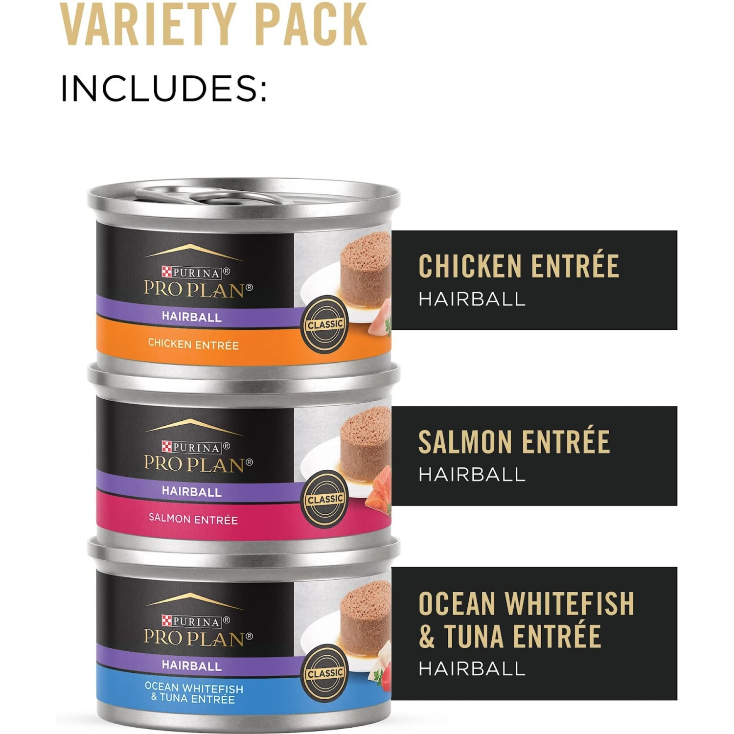Purina Pro Plan Hairball Entrees Control Variety Pack Wet Cat Food, 3-oz Can, Case Of 24