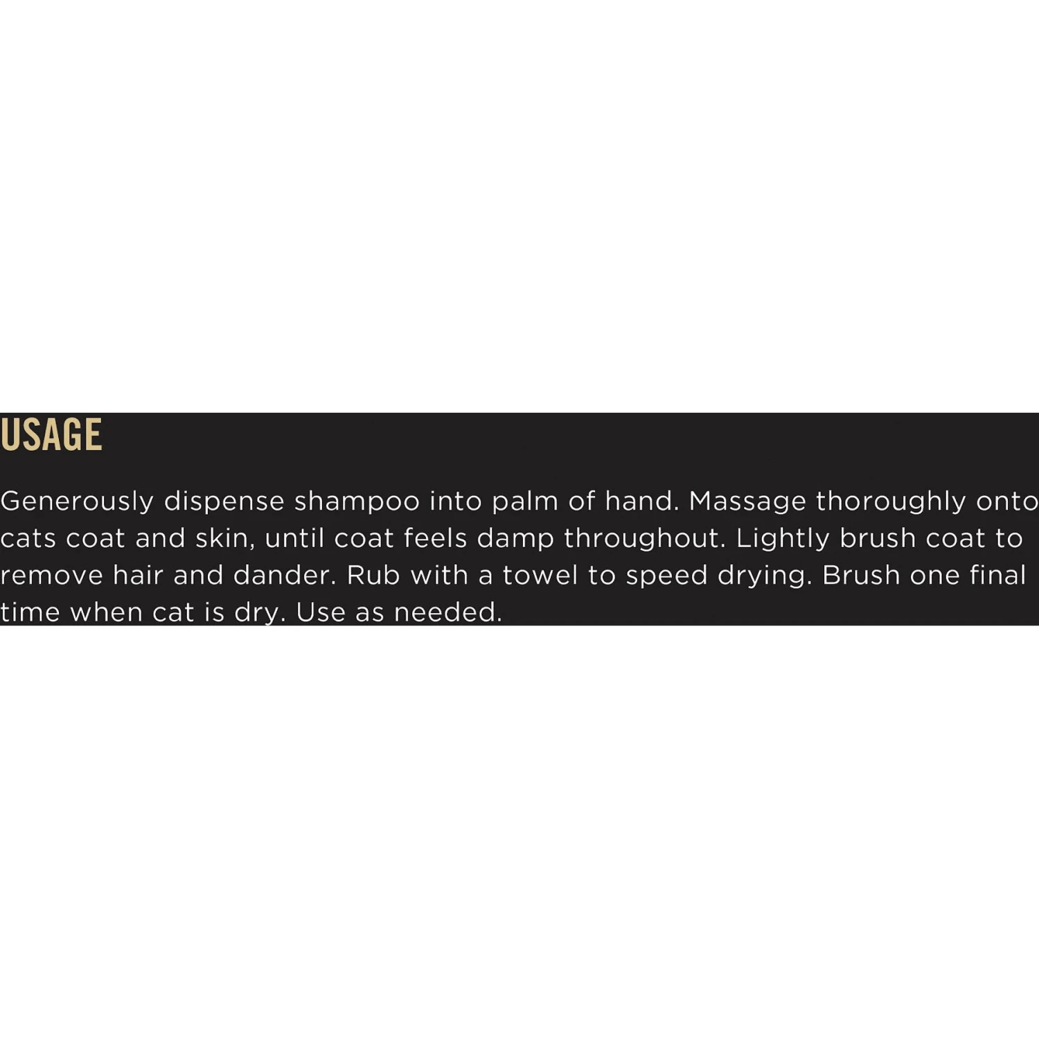 - Rinse-free, dry shampoo for cats shown to reduce the allergens in cat hair and dander.