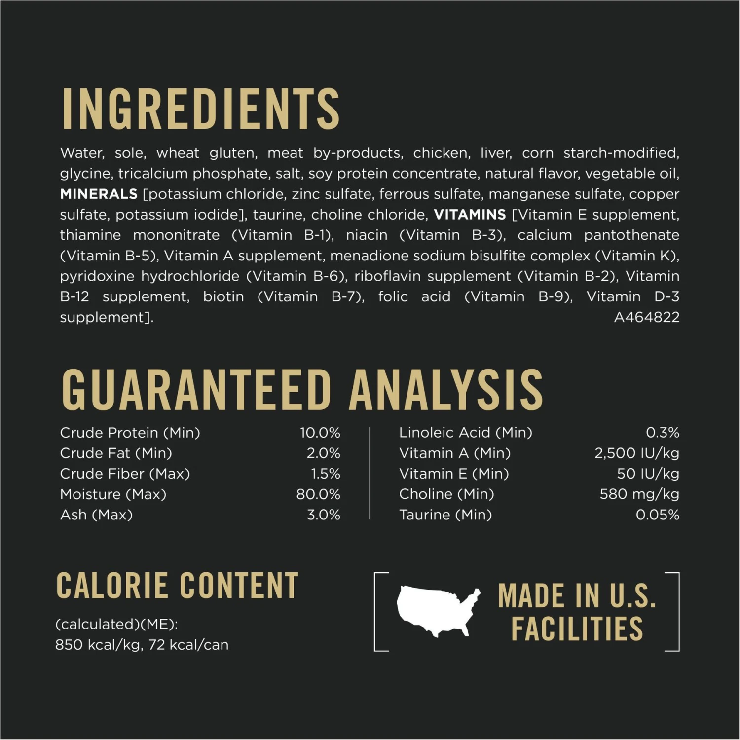 - Features vitamin E and linoleic acid for immune health, protein for muscle health, choline for brain health and taurine and vitamin A for vision health.