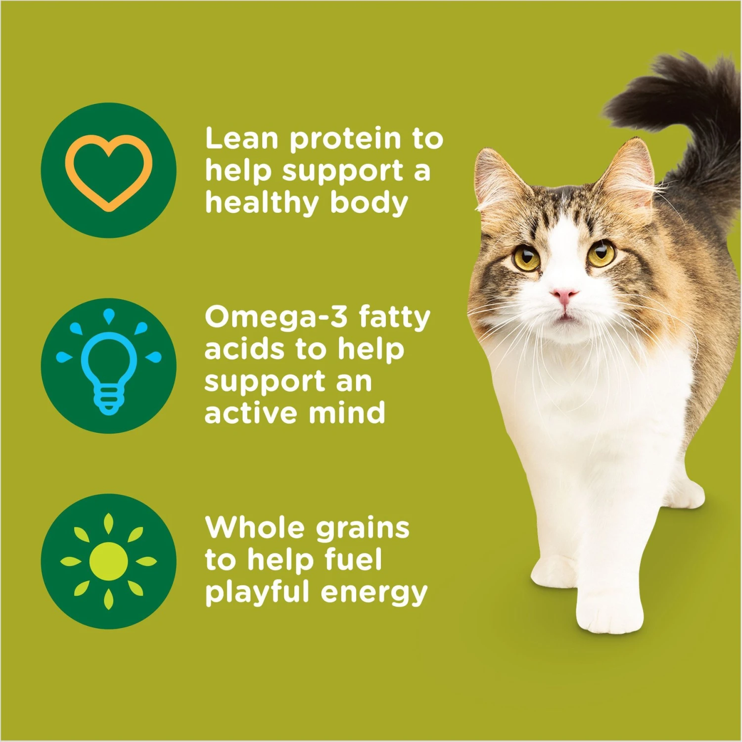 - Real U.S. farm-raised chicken is the #1 ingredient in this natural cat food with added vitamins and minerals. This high quality protein helps in maintaining healthy organs and lean muscles.