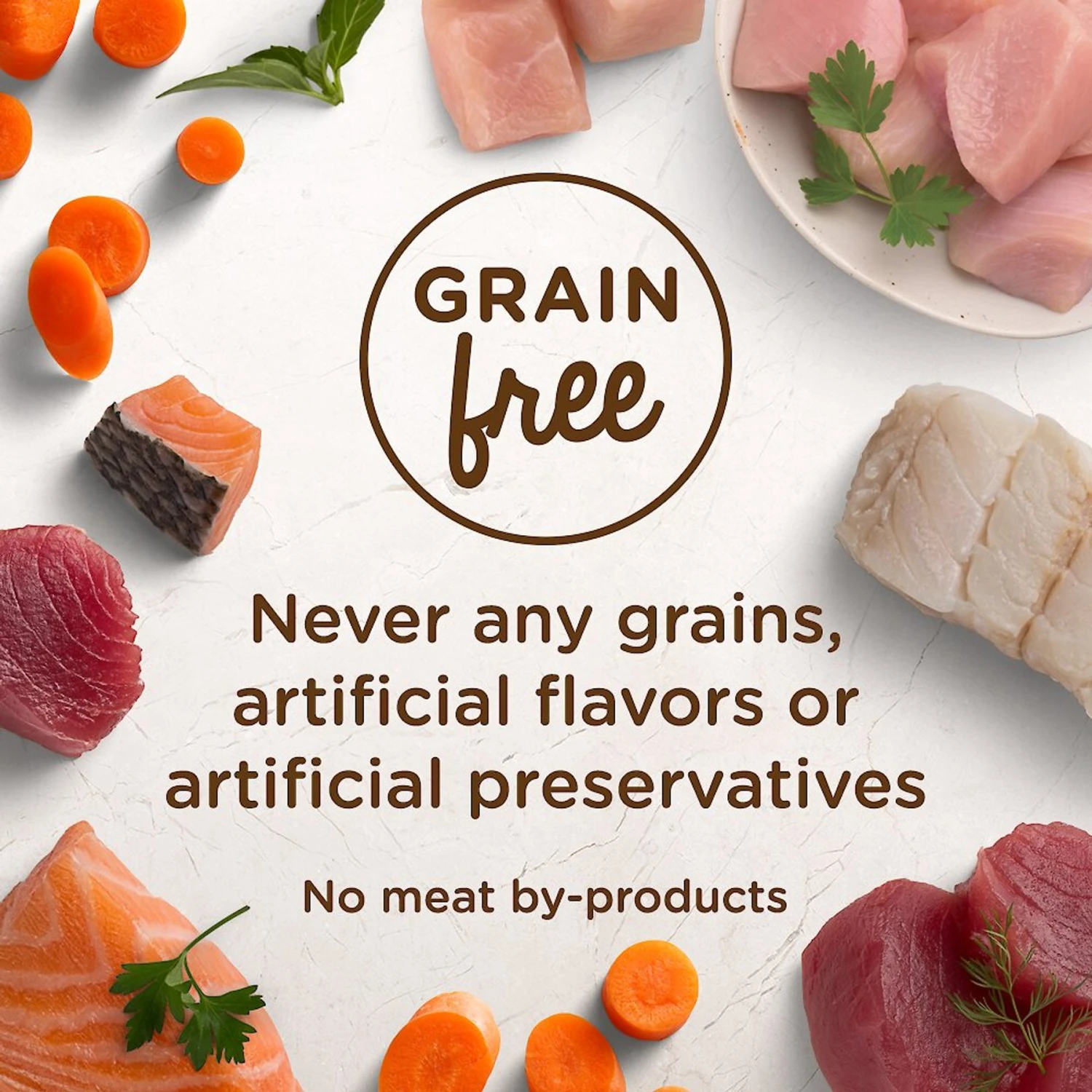 - Grain-free recipe includes real yellowfin tuna and veggies for easily-digestible, high-quality protein to support lean mass.