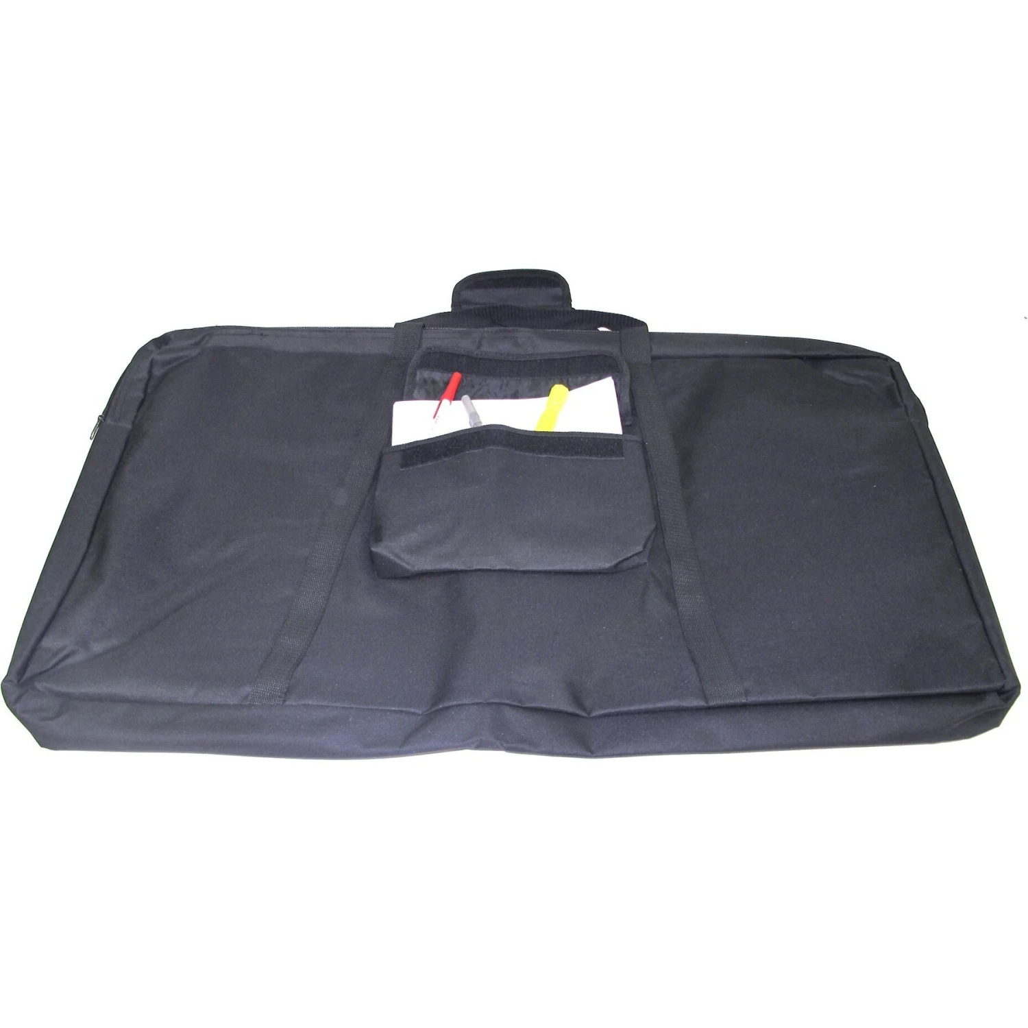 - A front storage pocket measures 10 x 8 inches and features a fuzzy fastener closure to secure extra supplies.