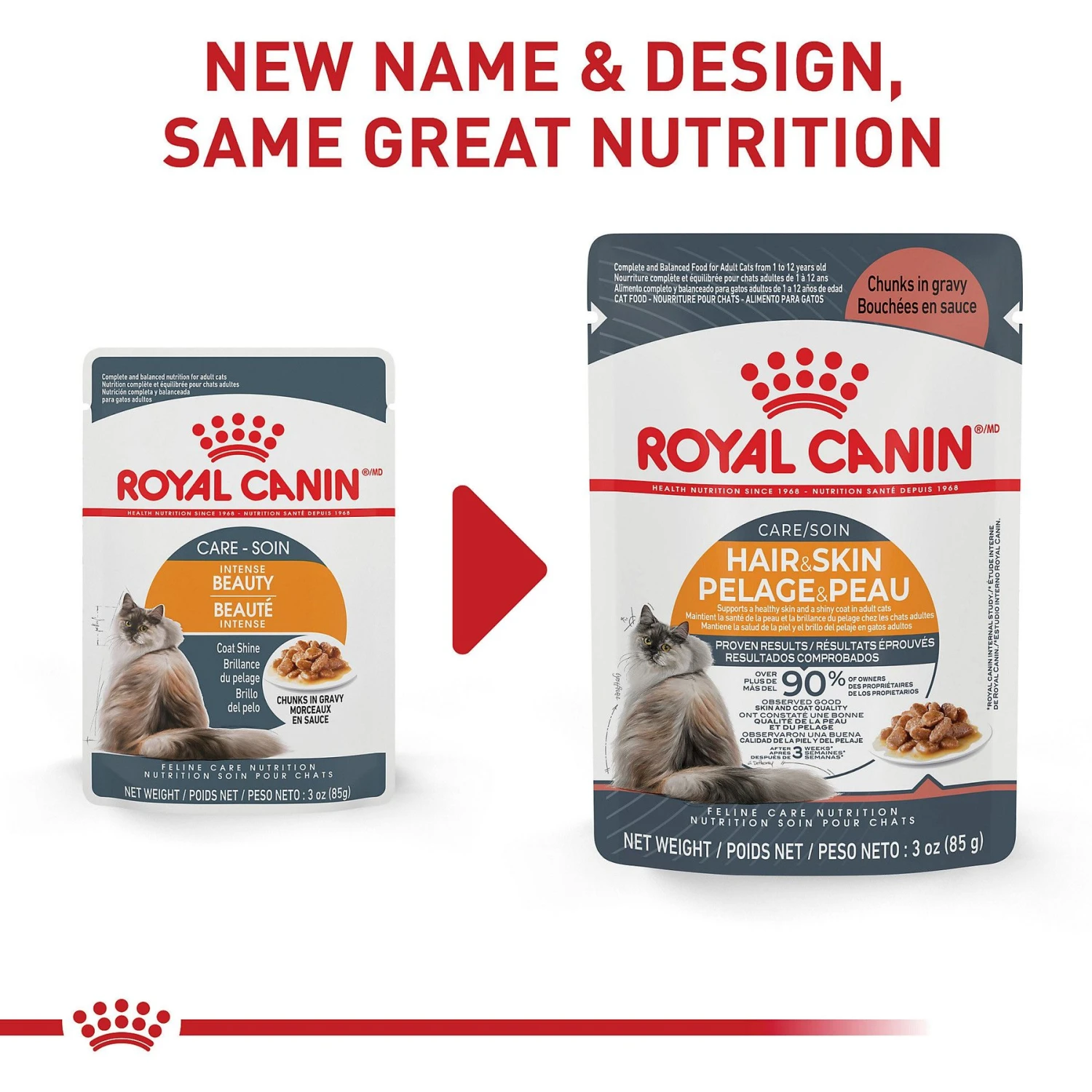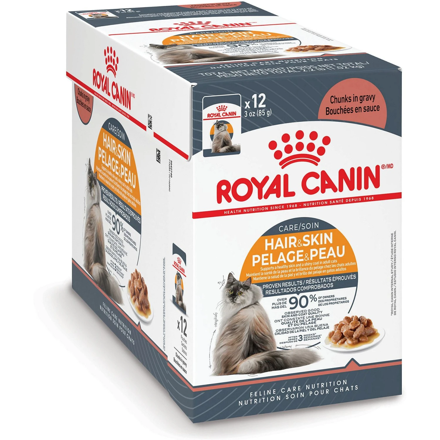 Royal Canin Feline Care Nutrition Hair & Skin Care Chunks In Gravy Pouch Cat Food, 3-oz, Case Of 12
