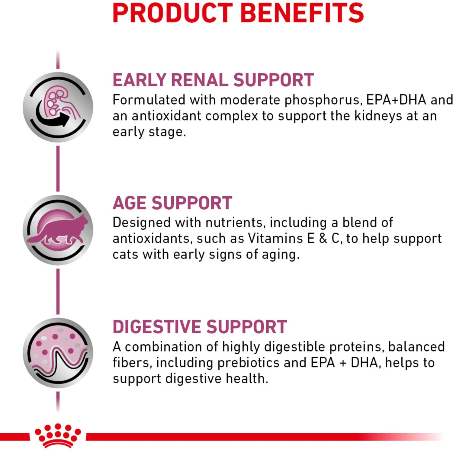 - Formulated to help support cats with early signs of aging by providing nutrients, including antioxidants such as Vitamins E & C.