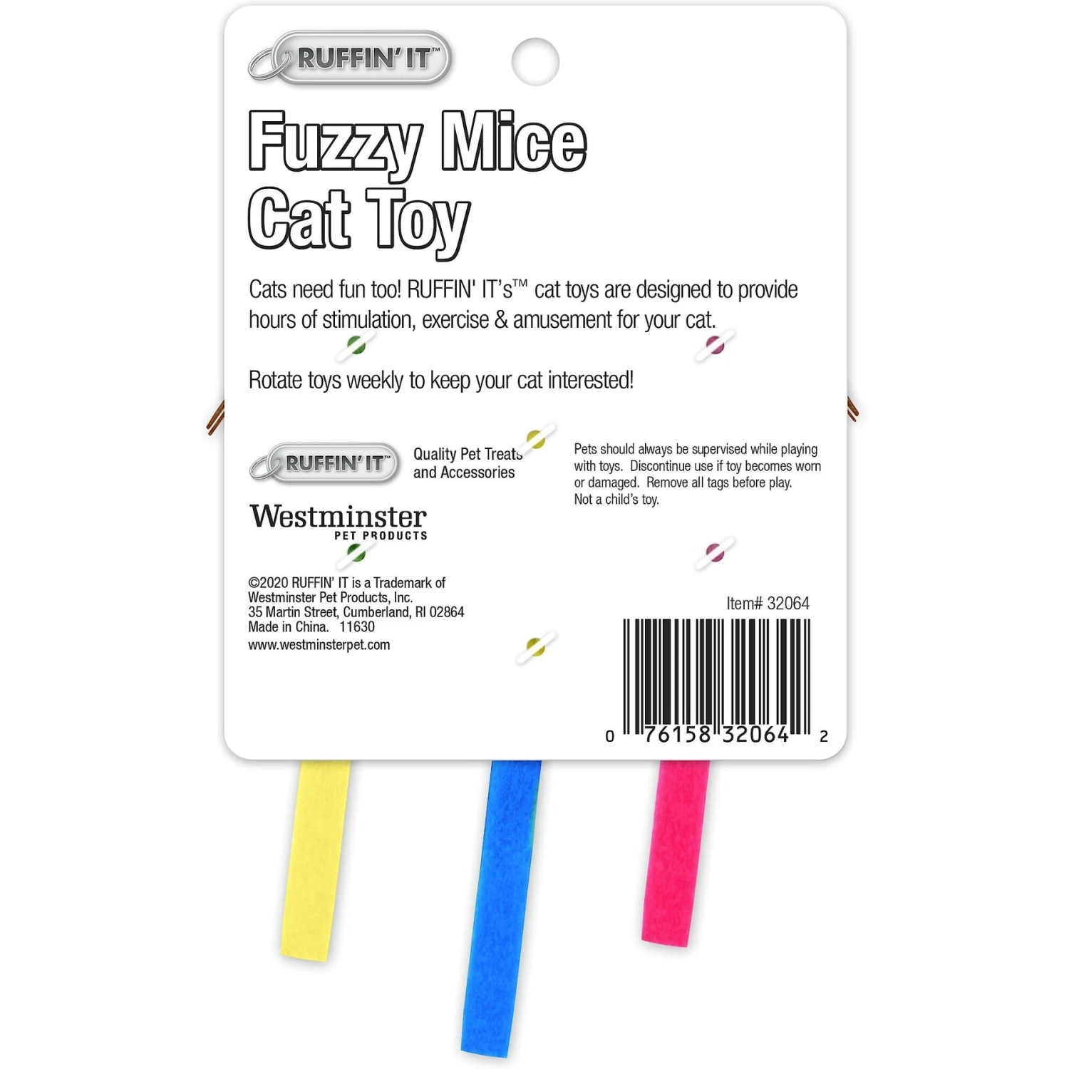 RUFFIN’ IT Fuzzy Mice Assorted Cat Toy, 3 Count