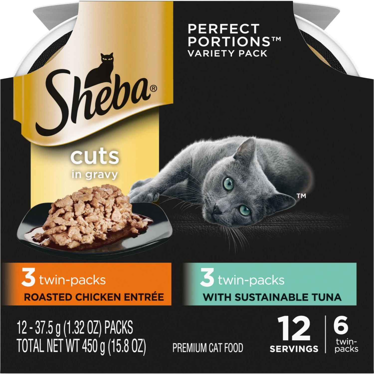 Sheba Perfect Portions Tuna & Roasted Chicken Entree Cuts In Gravy Variety Pack Adult Wet Cat Food Trays
