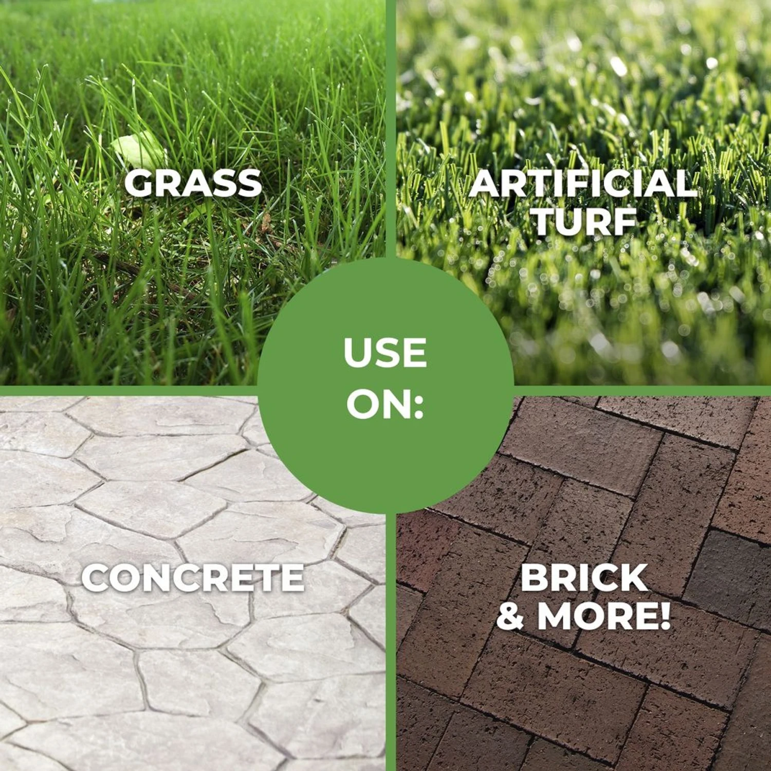 - May be used on grass, artificial turf, gravel concrete, brick and more.