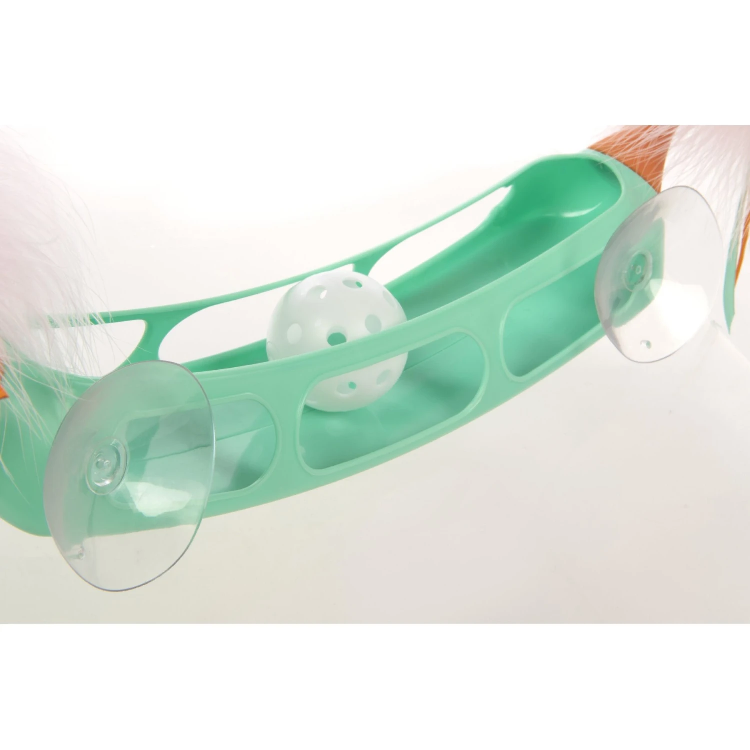 - Offers two ways to play—use it on the floor, or attach it to a window to entice your cat to jump and reach for the fun!