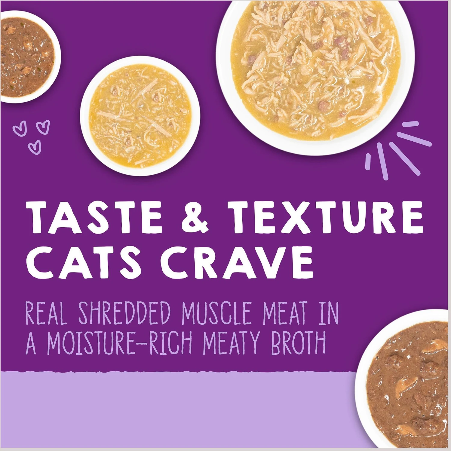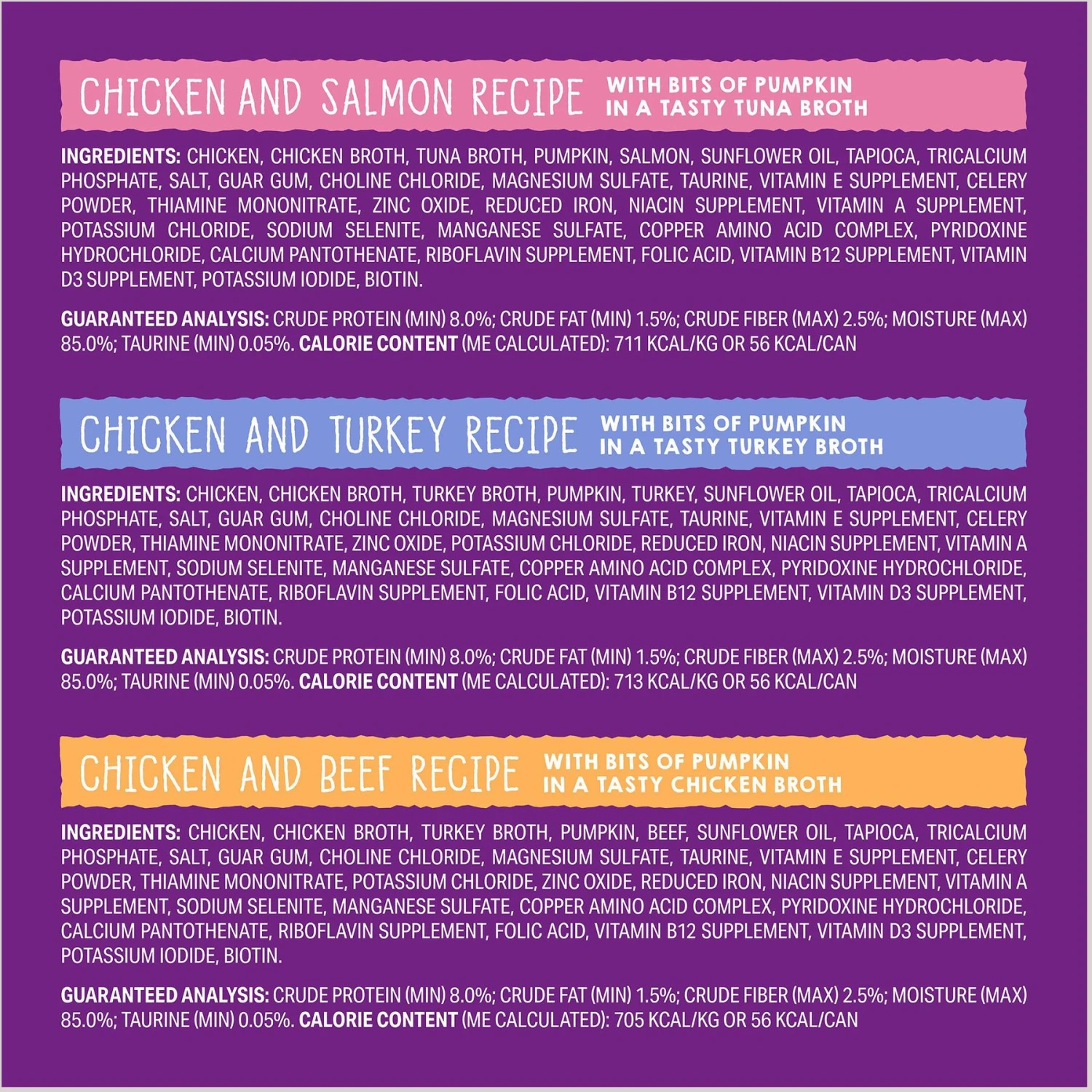- Shredded muscle meat slowly simmered in a savory broth with bits of pumpkin delivers a special meal that will get your cat purring!