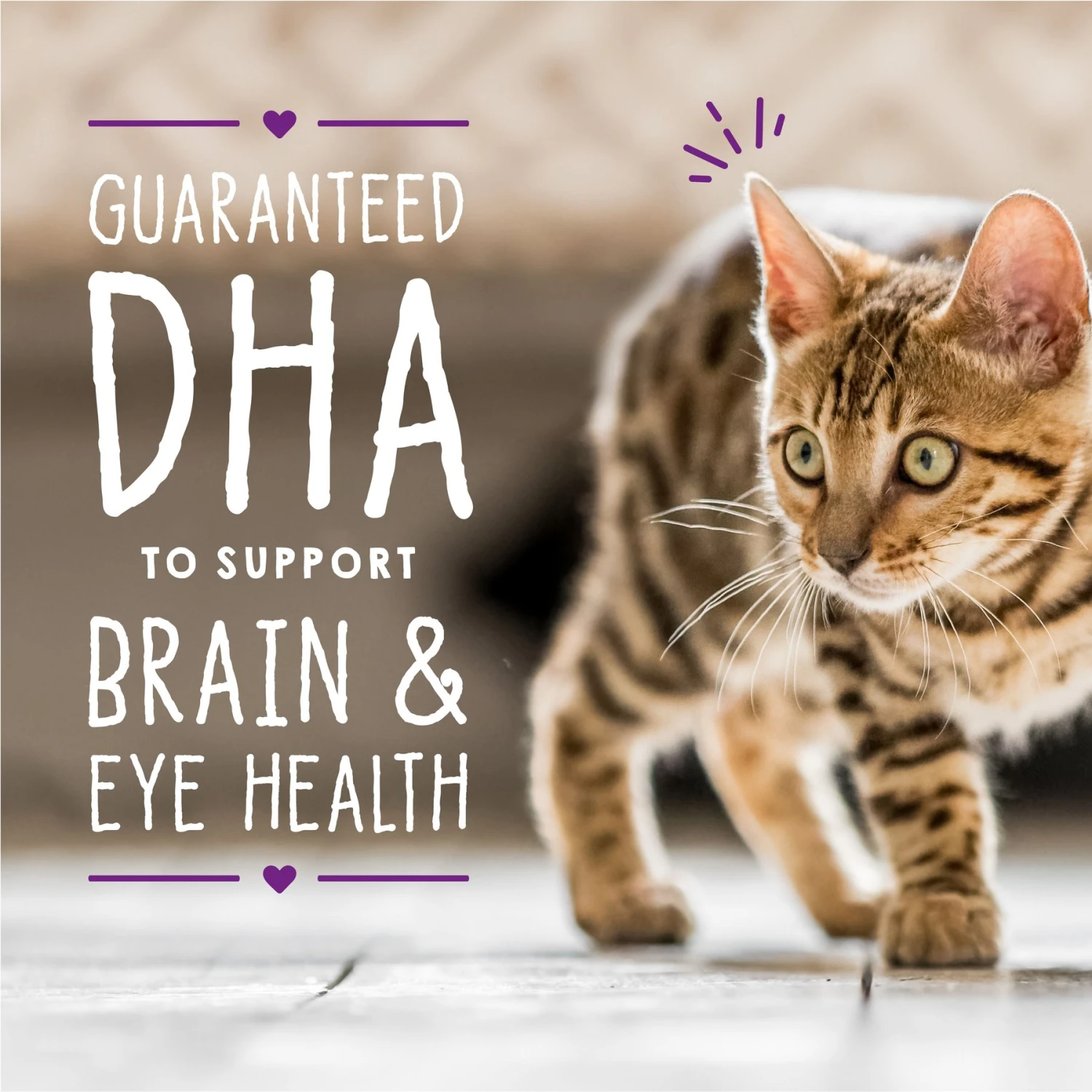 - Features taurine to support heart and vision health and omega fatty acids to promote a healthy coat and skin.
