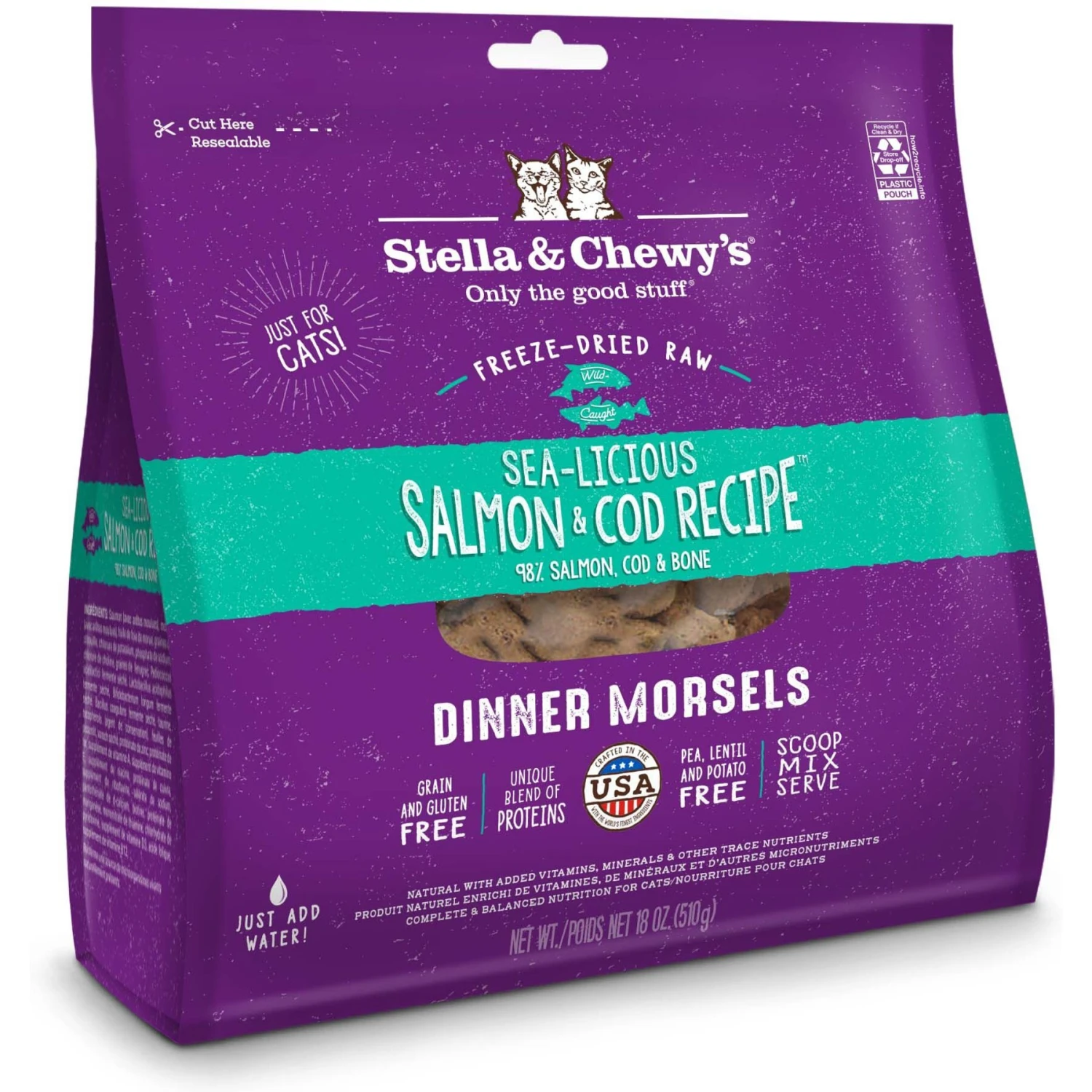 Stella & Chewy’s Dinner Morsels Sealicious Salmon & Cod Recipe Cat Dried Food, 18-oz Bag