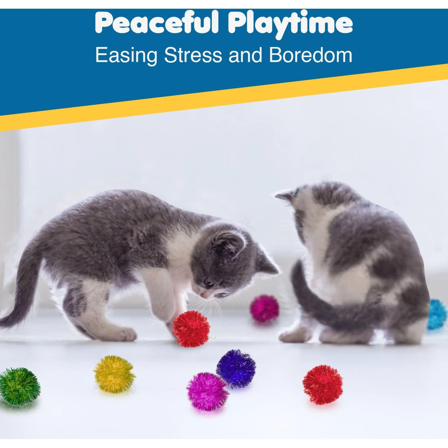 SunGrow Cat Pom Pom Balls For Indoor, Interactive Fetch & Play Toy For Arts & Crafts