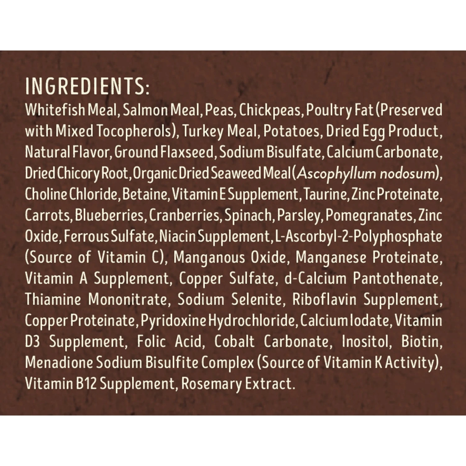- Whitefish meal is highly digestible for strong muscles; salmon meal provides amino acids and omega-3 fatty acids for healthy skin and coat.