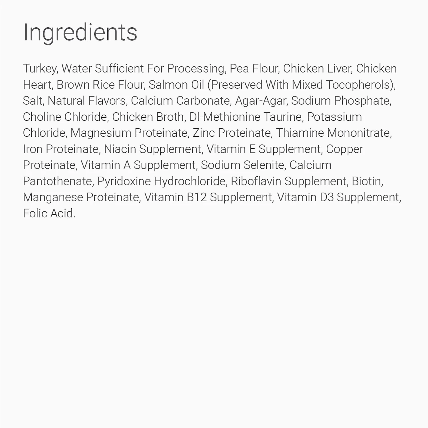 - Humanely raised turkey is the first ingredient in this wet cat food recipe.