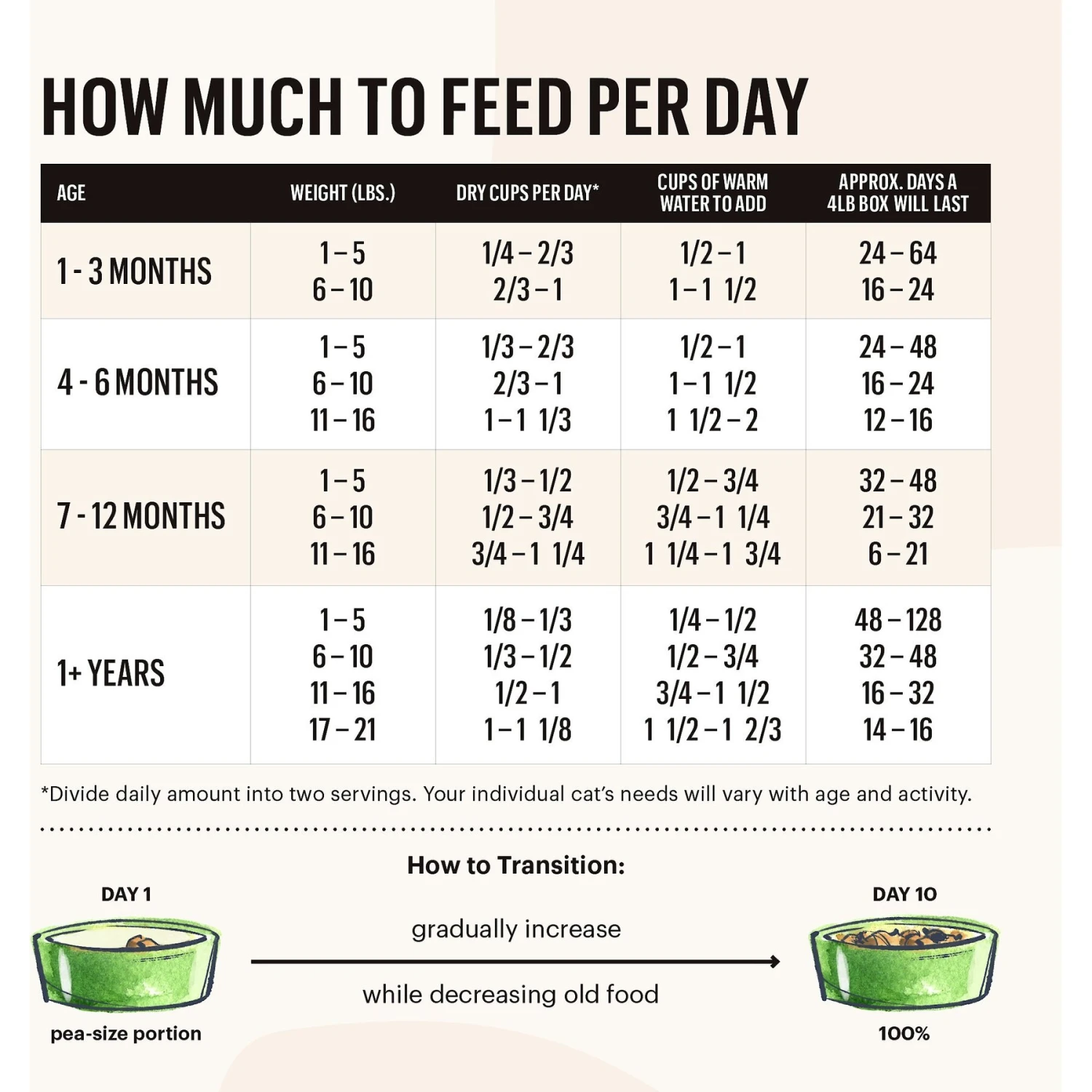 - Simply add warm water for a delicious and nutritious meal for your feline friend.