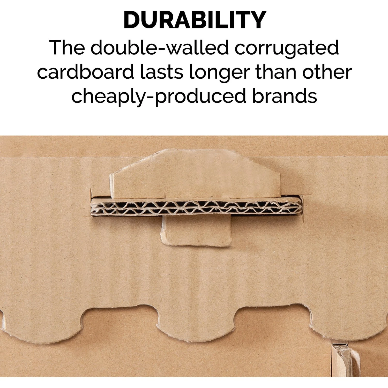 - Designed with a double-walled corrugated scratching surface with varying degrees of thickness to promote a lasting durability.