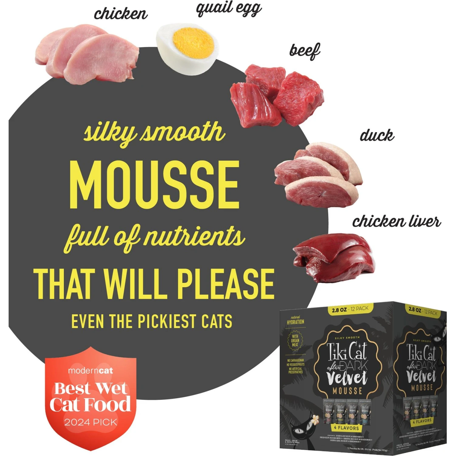 Tiki Cat After Dark Velvet Mousse Variety Pack Grain-Free Wet Cat Food, 2.8-oz Pouch, Case Of 12
