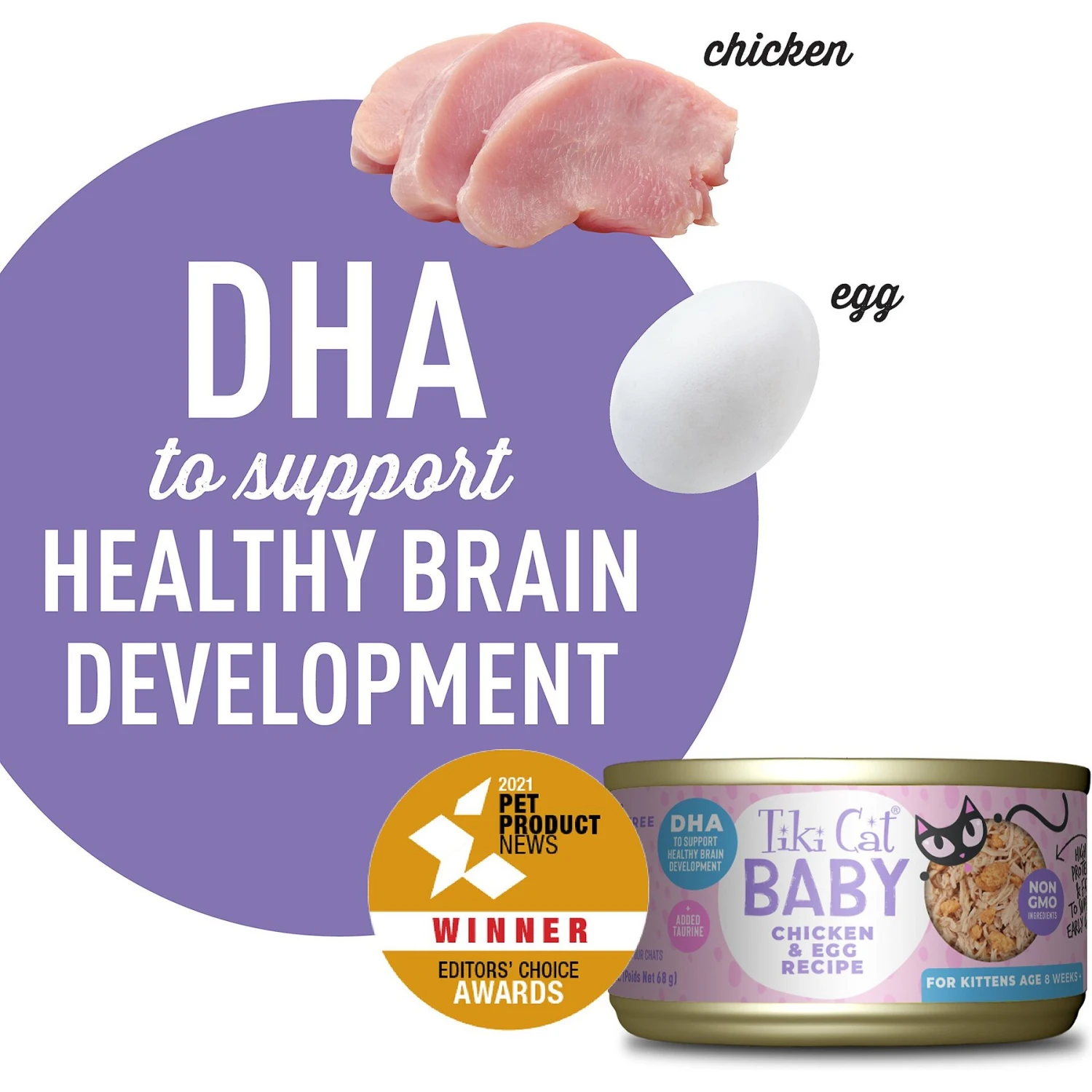 Tiki Cat Baby Grain-Free Chicken & Egg Recipe Wet Cat Food, 2.4-oz Can, Case Of 12