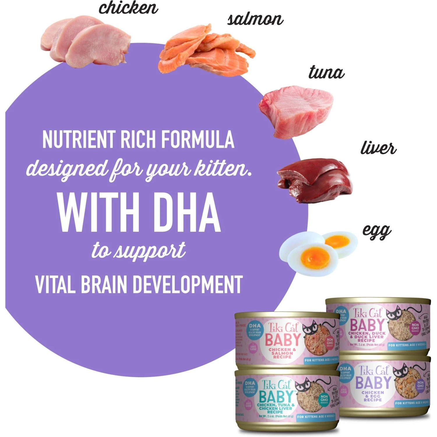 Tiki Cat Baby Variety Pack Shreds Grain-Free Wet Cat Food, 2.4-oz Can, Case Of 12