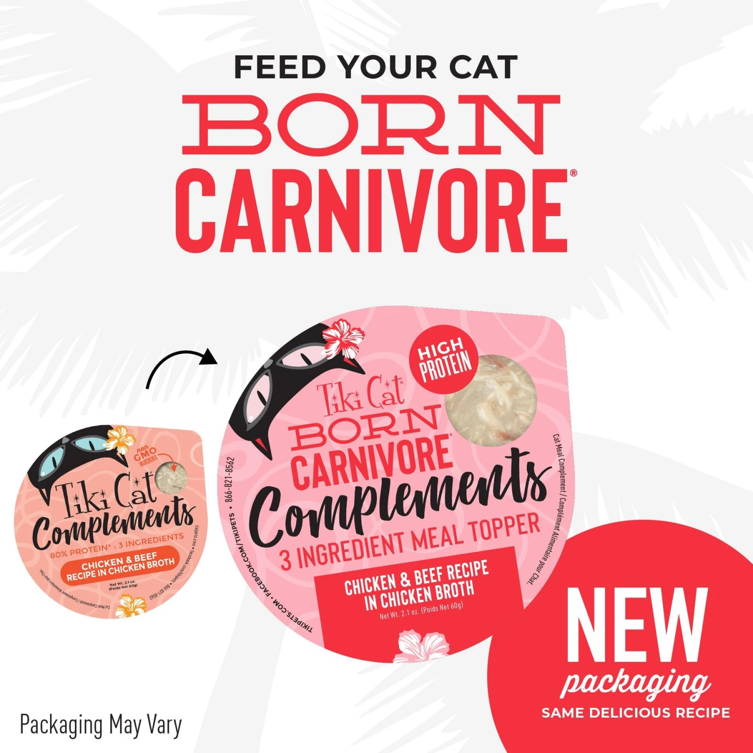 Tiki Cat Born Carnivore Complements Chicken & Beef Recipe In Chicken Broth Wet Cat Food Topper, 2.1-oz, Case Of 8