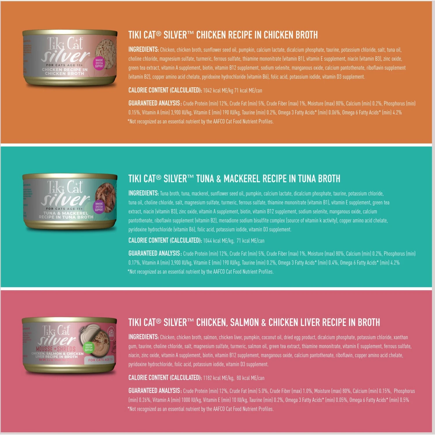Tiki Cat Silver Variety Pack Grain-Free Wet Cat Food, 2.4-oz Can, Case Of 12