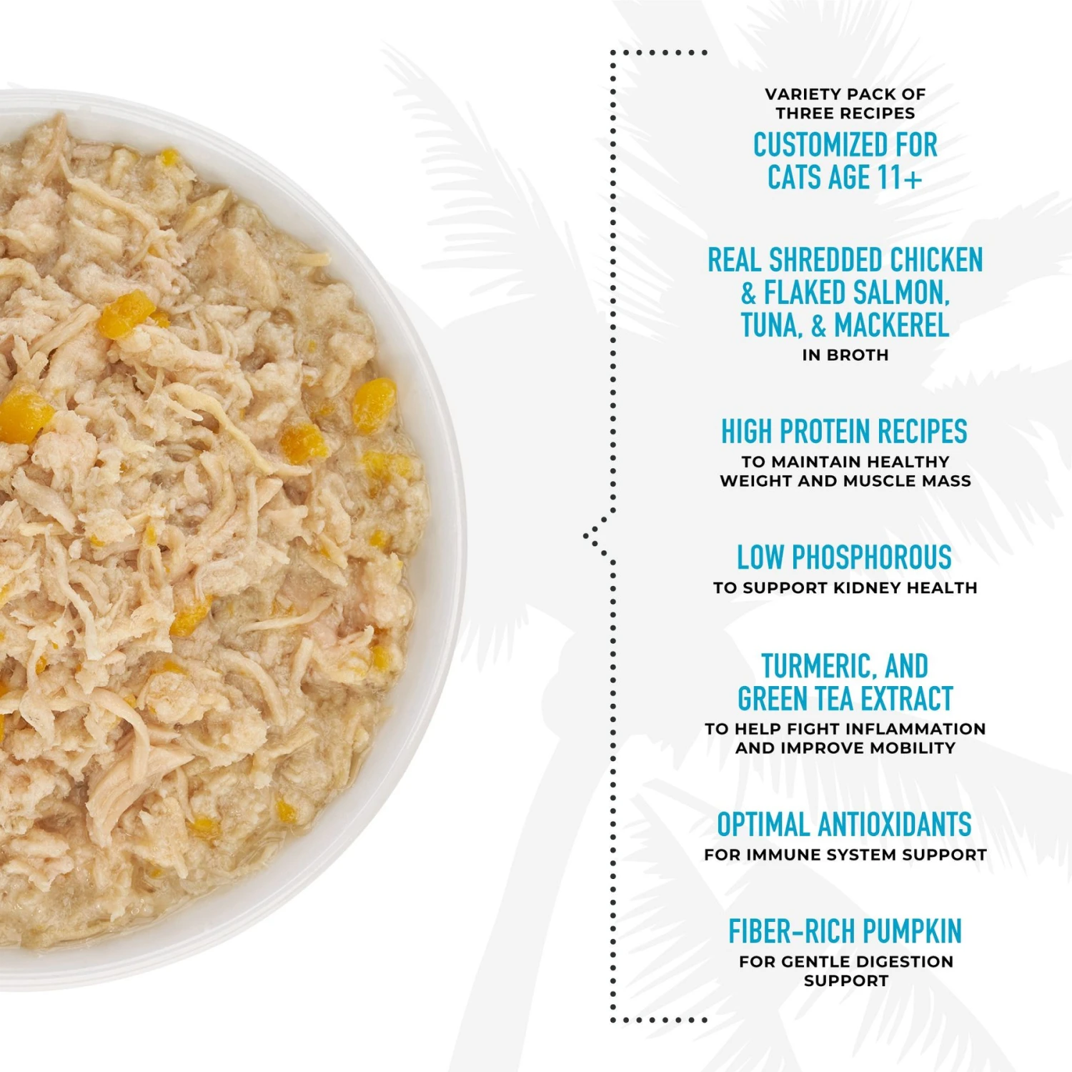 - Variety pack of 3 tasty recipes customized for cats age 11 and up.