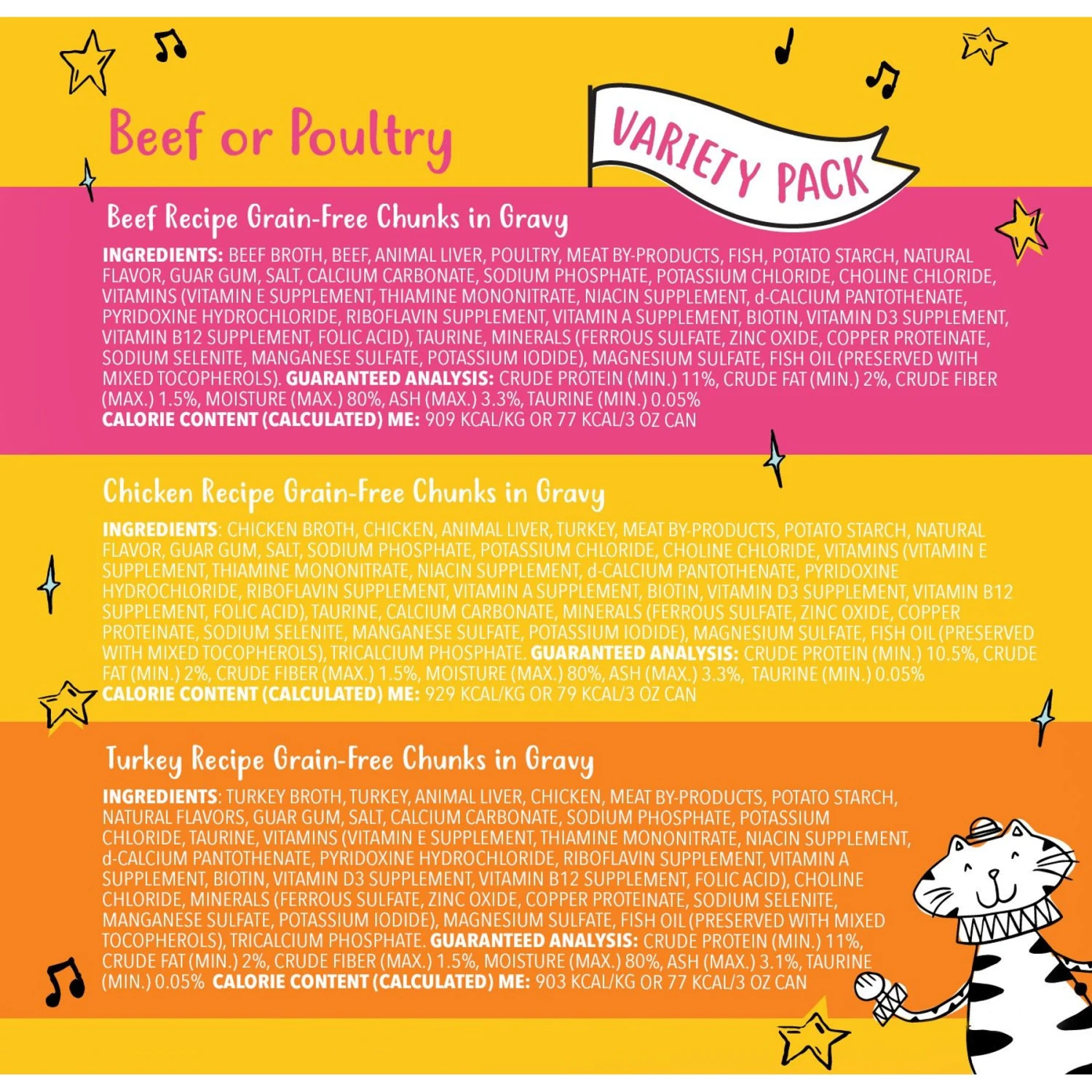 Tiny Tiger Chunks In EXTRA Gravy Beef & Poultry Recipes Variety Pack Grain-Free Canned Cat Food