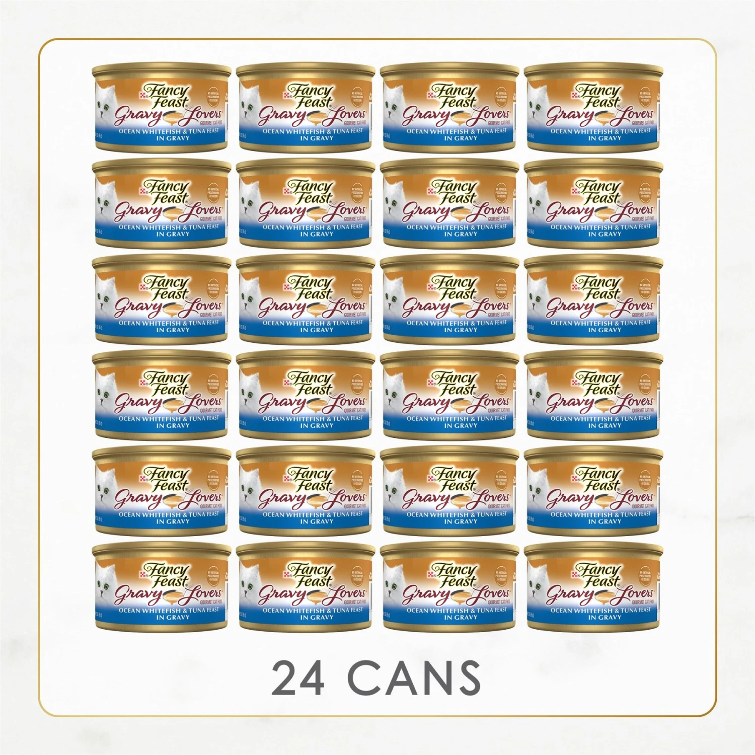 Tiny Tiger Chunks In Gravy Seafood Recipe Grain-Free Canned Cat Food & Fancy Feast Gravy Lovers Ocean Whitefish & Tuna Feast In Sauteed Seafood Flavor Gravy Canned Cat Food