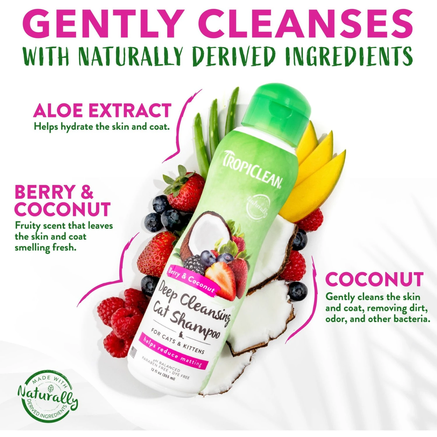 TropiClean Berry & Coconut Deep Cleansing Cat Shampoo, 12-oz Bottle