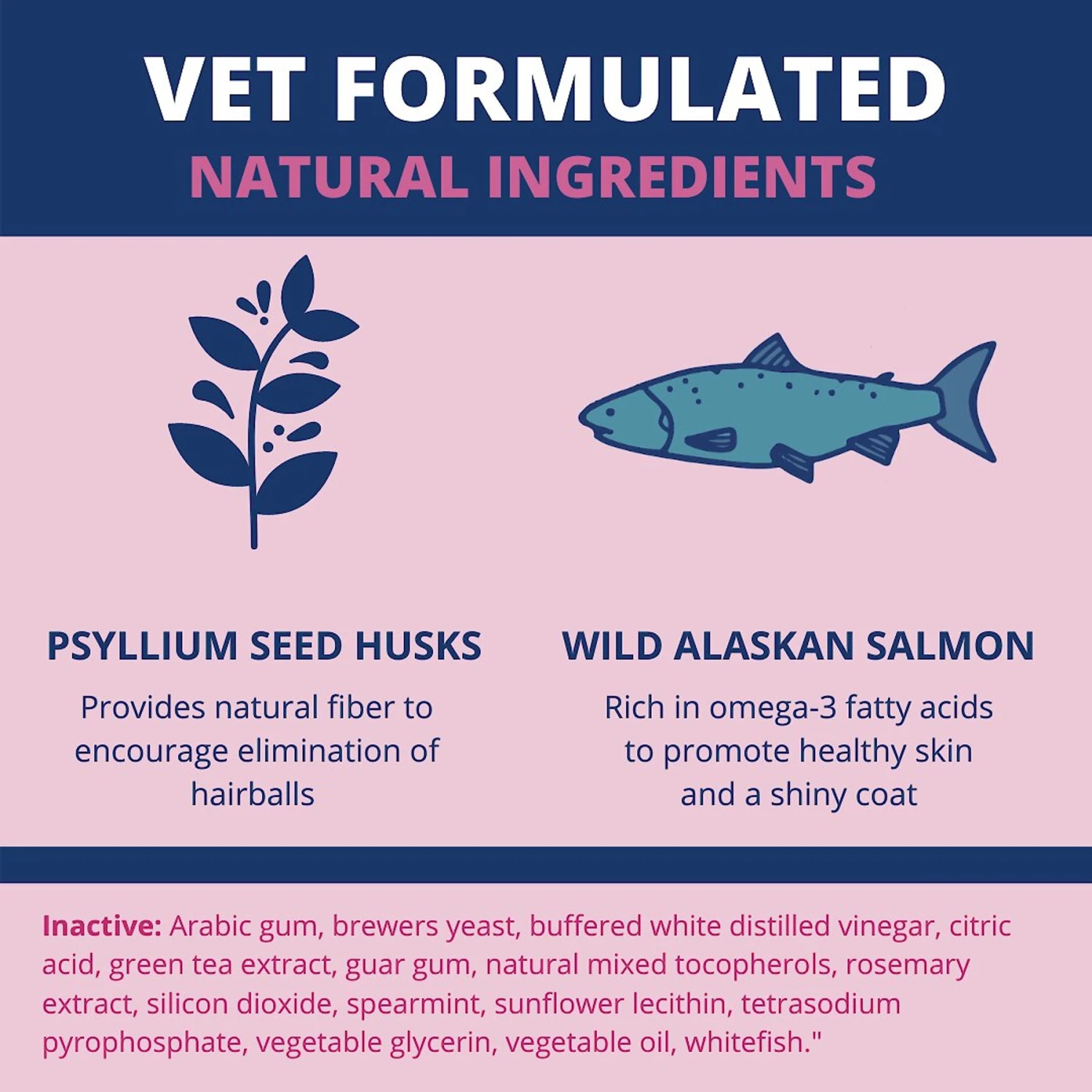 - Helps your feline eliminate hairballs with natural fiber from psyllium seed husk.