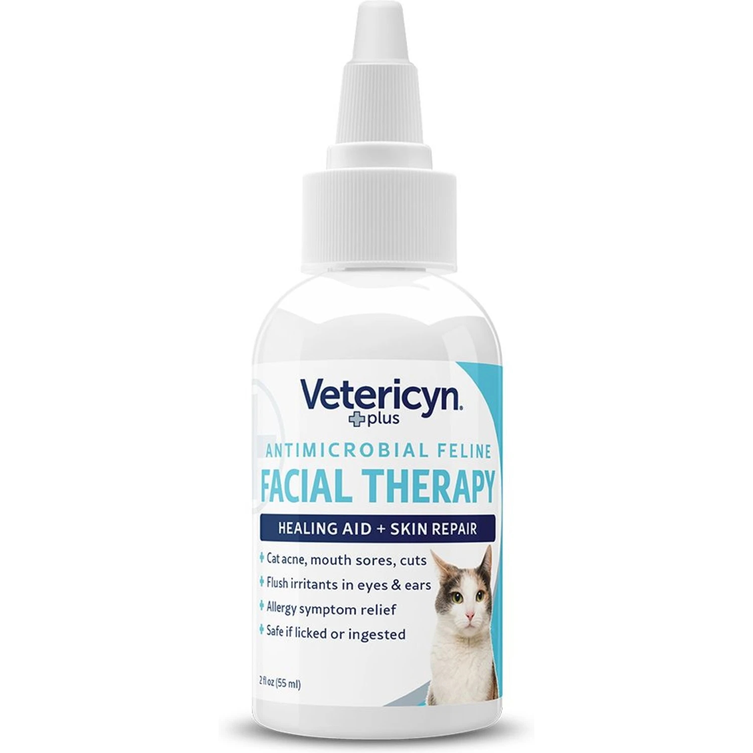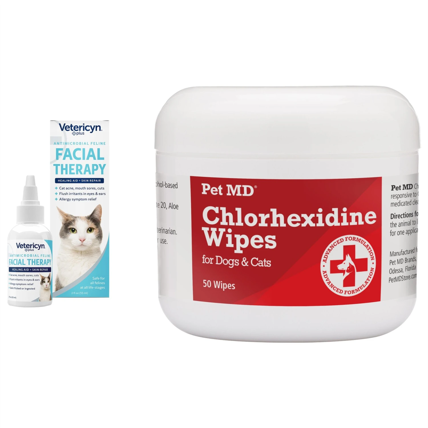 Vetericyn Plus Antimicrobial Feline Facial Therapy For Cat Acne, Eye & Ear Problems & Mouth Sores & Pet MD Chlorhexidine Antiseptic Wipes For Dogs & Cats
