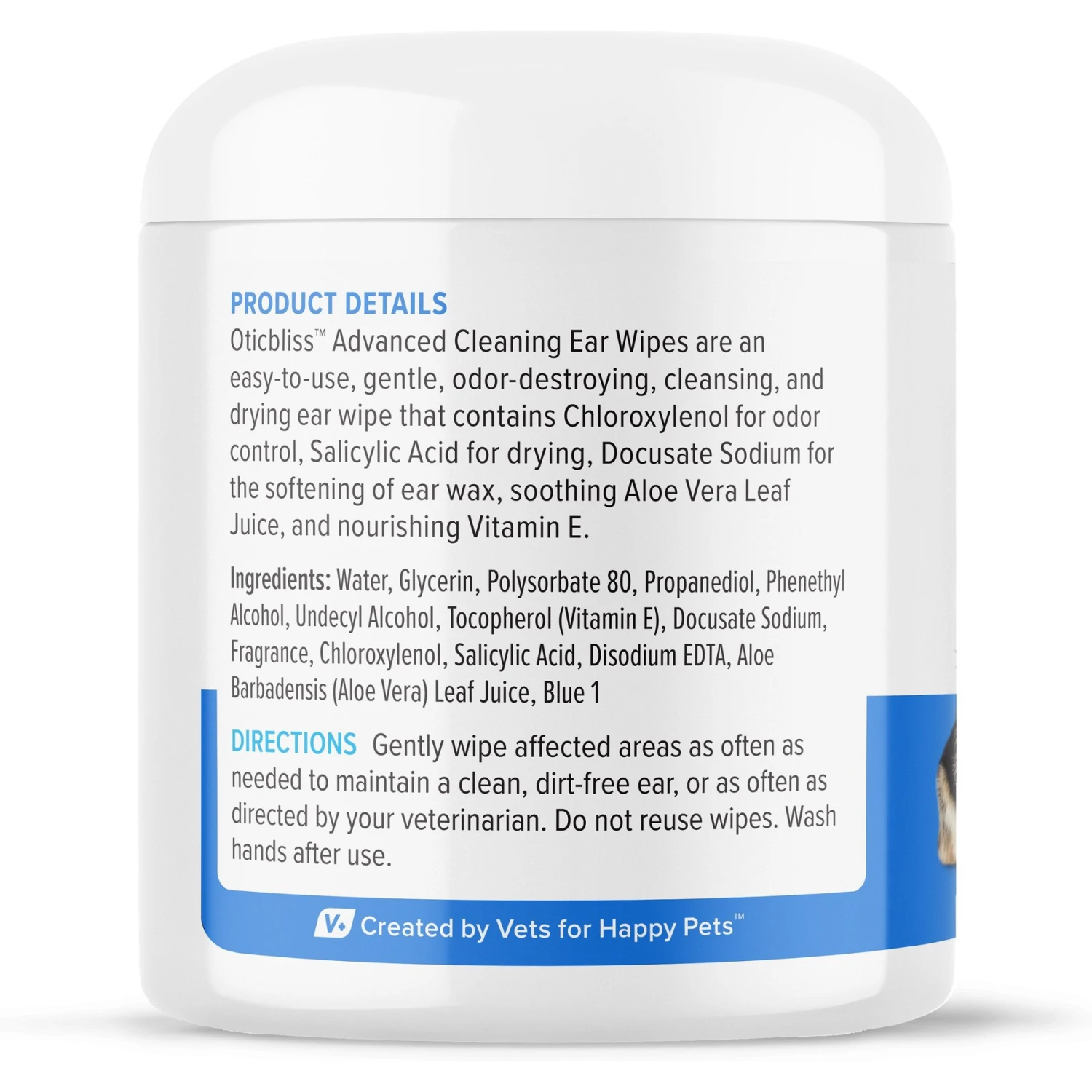 Vetnique Labs Oticbliss Advanced Cleaning, Soothing Aloe & Medicated Dog & Cat Ear Wipes