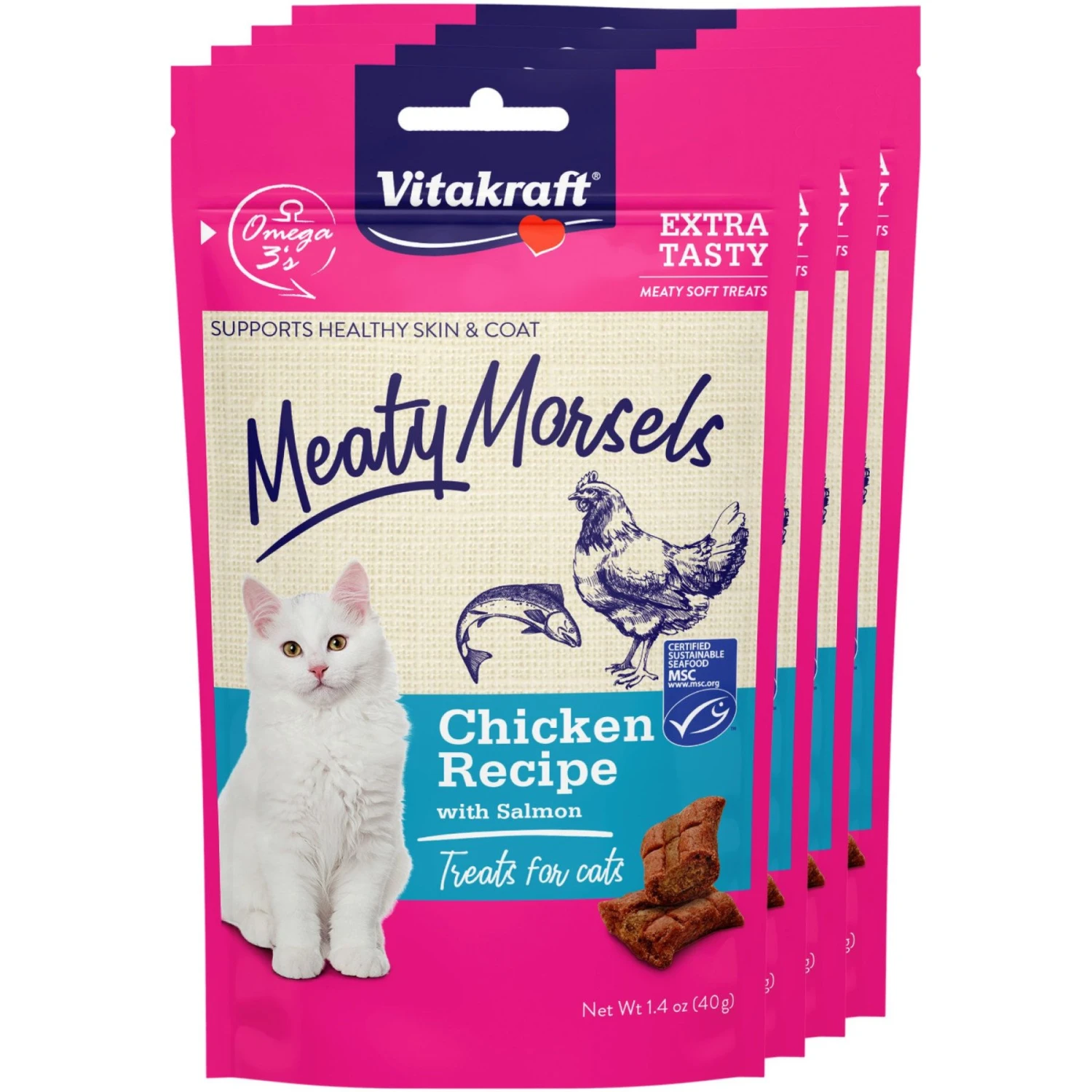 Vitakraft Meaty Morsels Chicken With Salmon Recipe Soft Cat Treats, 1.4-oz Pouch, Pack Of 4