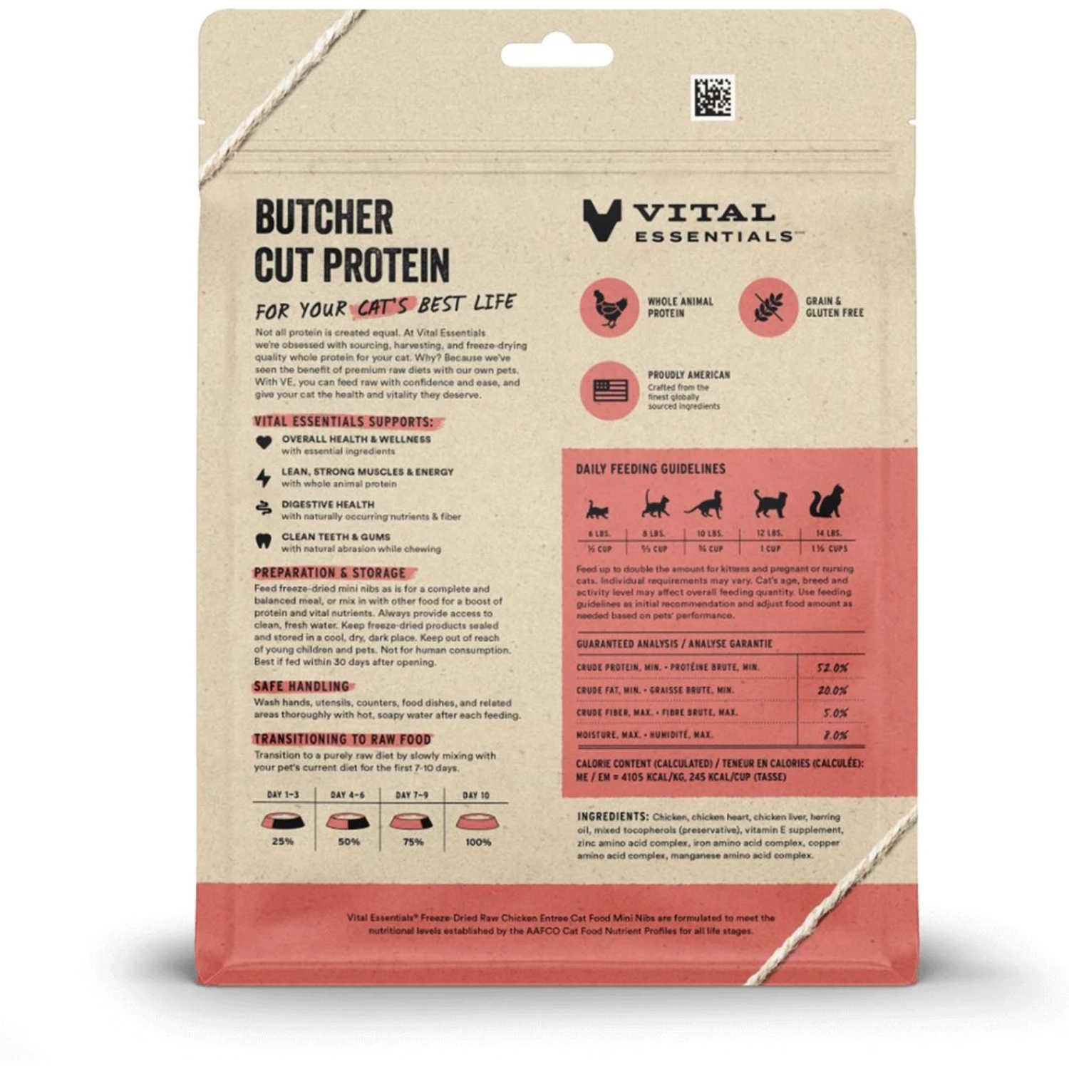 Vital Essentials Chicken Entree Cat Food Mini Nibs Grain-Free Freeze-Dried Raw Cat Food, 8-oz Bag