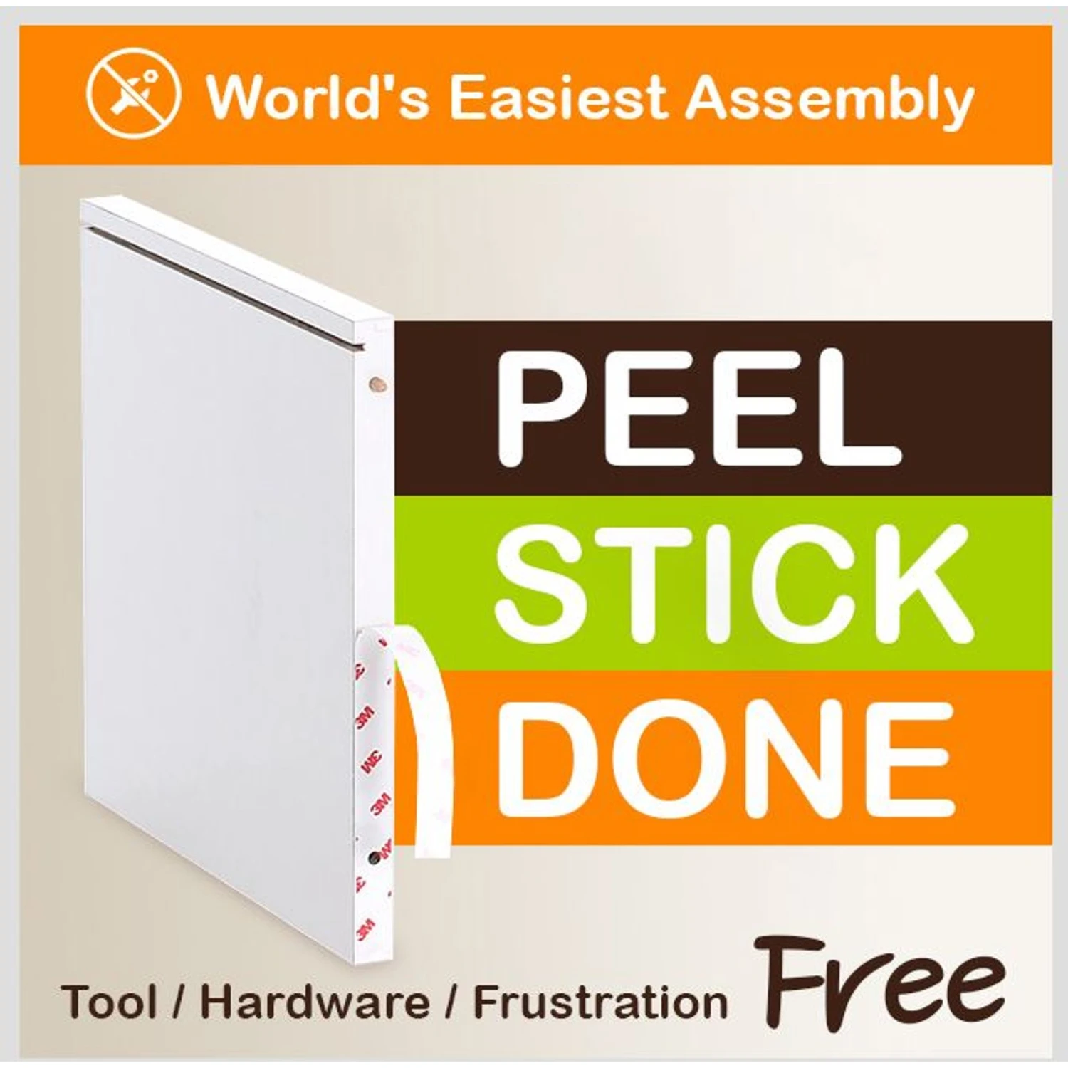 - Easy to assemble with no tools required—simply peel the 3M adhesive strips and assemble using the easy-align pins; 3M industrial adhesive securely builds unit.