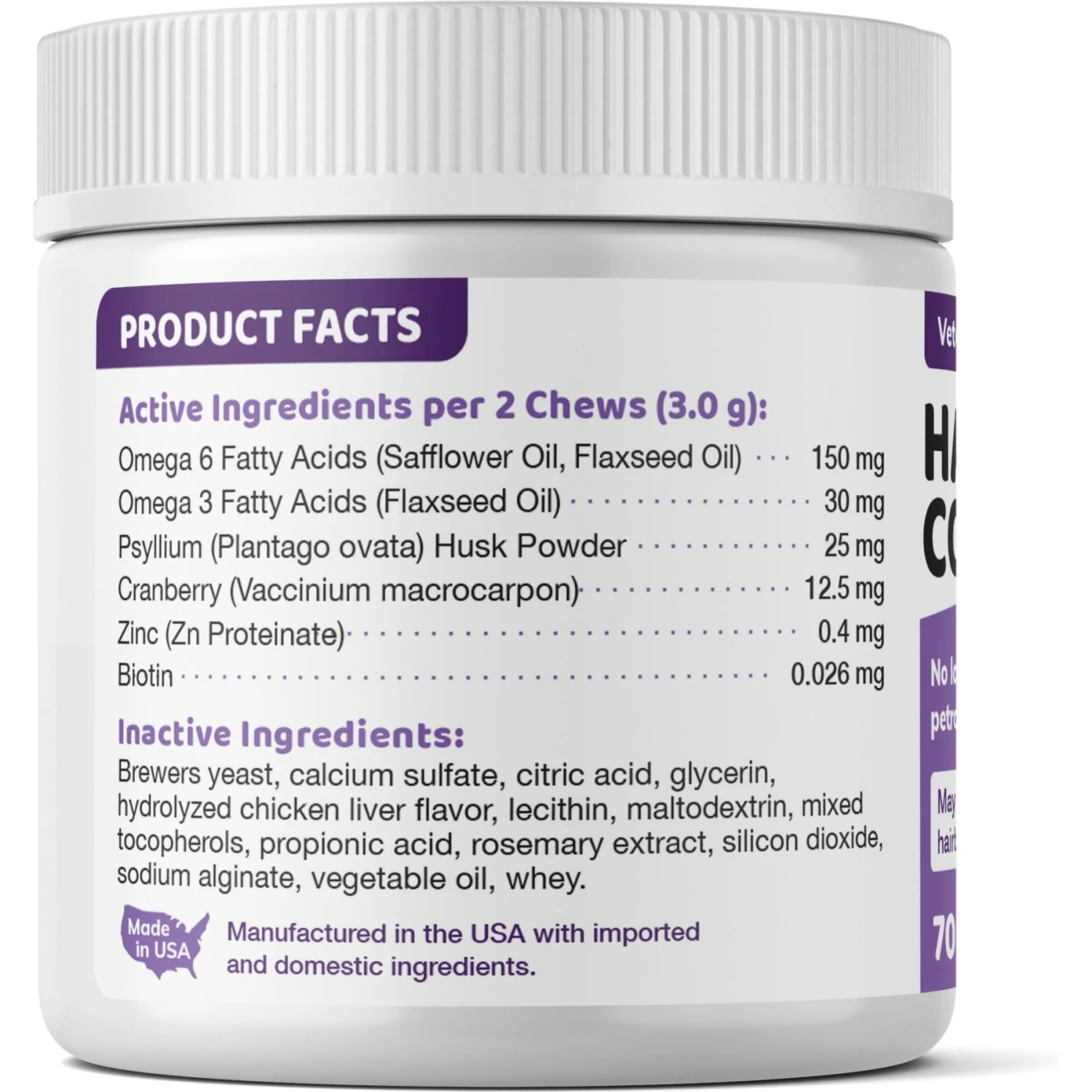 - Veterinarian-formulated hairball control soft chew features a unique mix of multivitamins, omega fatty acids, cranberry, fiber, zinc and biotin to support your cat’s skin, urinary, digestive and coat health.