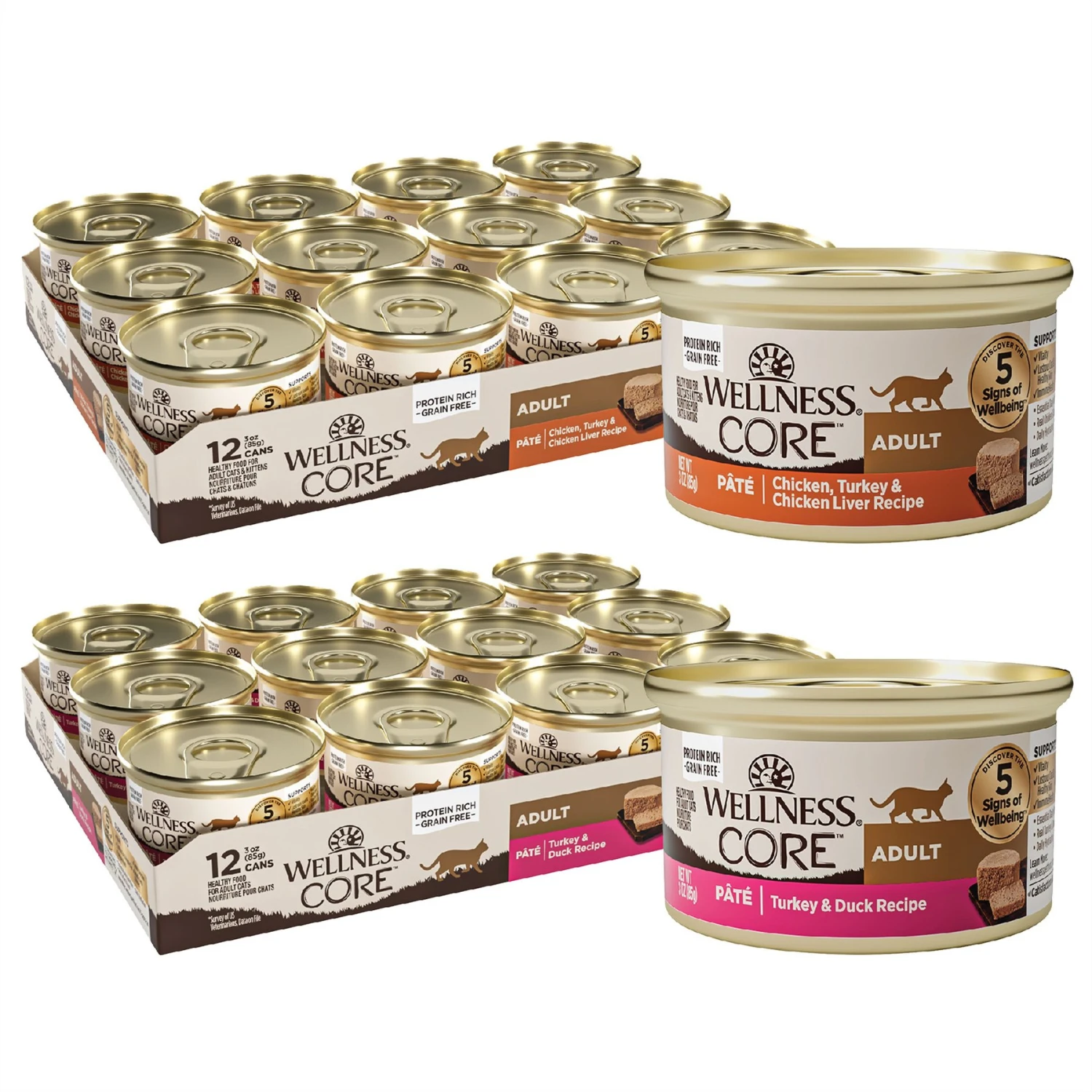 Wellness CORE Grain-Free Chicken, Turkey & Chicken Liver Formula Canned Cat Food & Wellness CORE Natural Grain-Free Turkey & Duck Pate Canned Cat Food