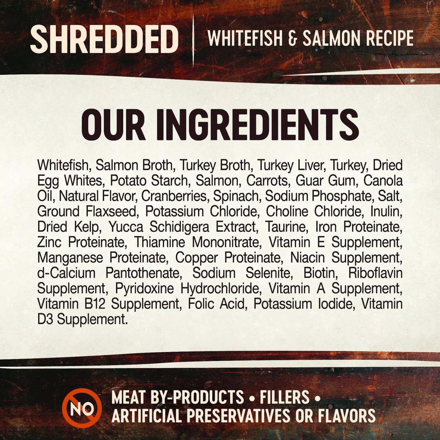 - 100% grain-free adult recipe is made with shredded whitefish as the first ingredient plus salmon for the protein needed to support lean muscles.